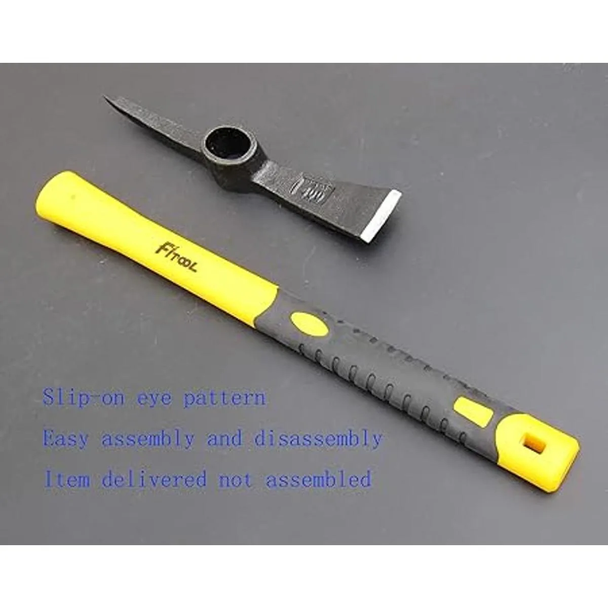 Púa forjada Adze, azada de mattock, hacha de púas de 15 pulgadas, forjada intacta de una pieza, mango de fibra de vidrio recubierto de plástico, 1.4 libras