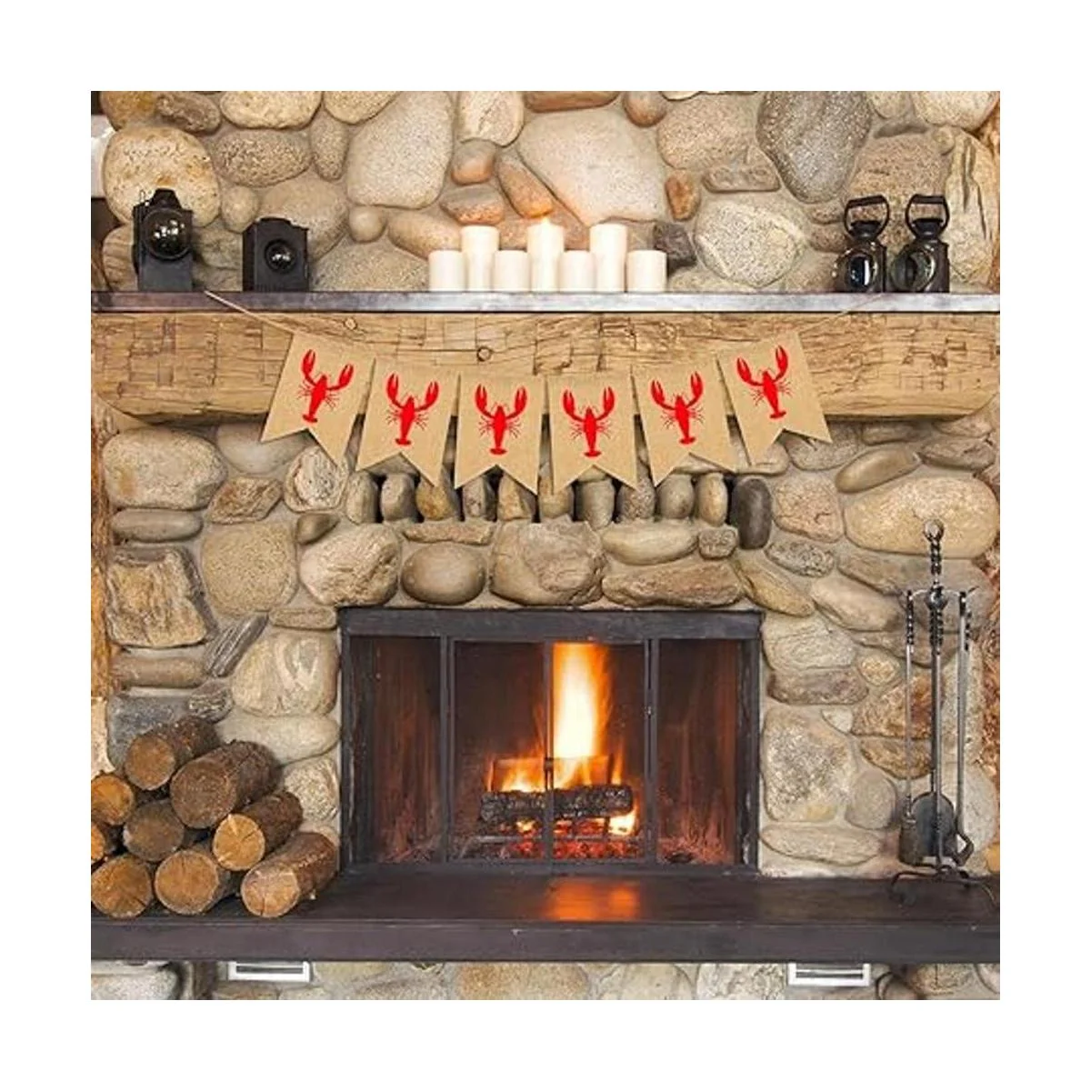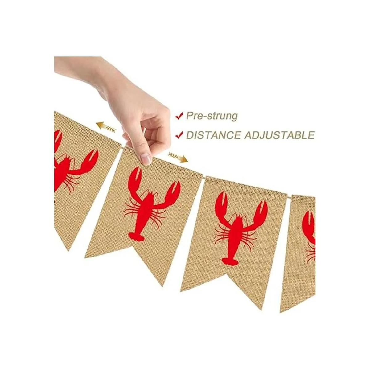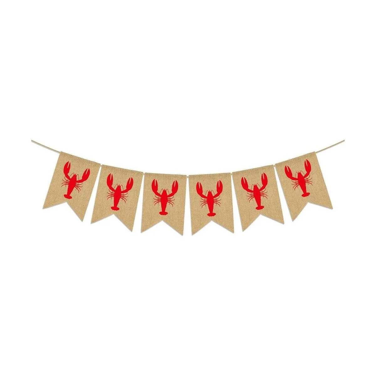 Pudodo Bandera rústica de arpillera de yute con langosta de verano, fiesta de cumpleaños, manto de chimenea