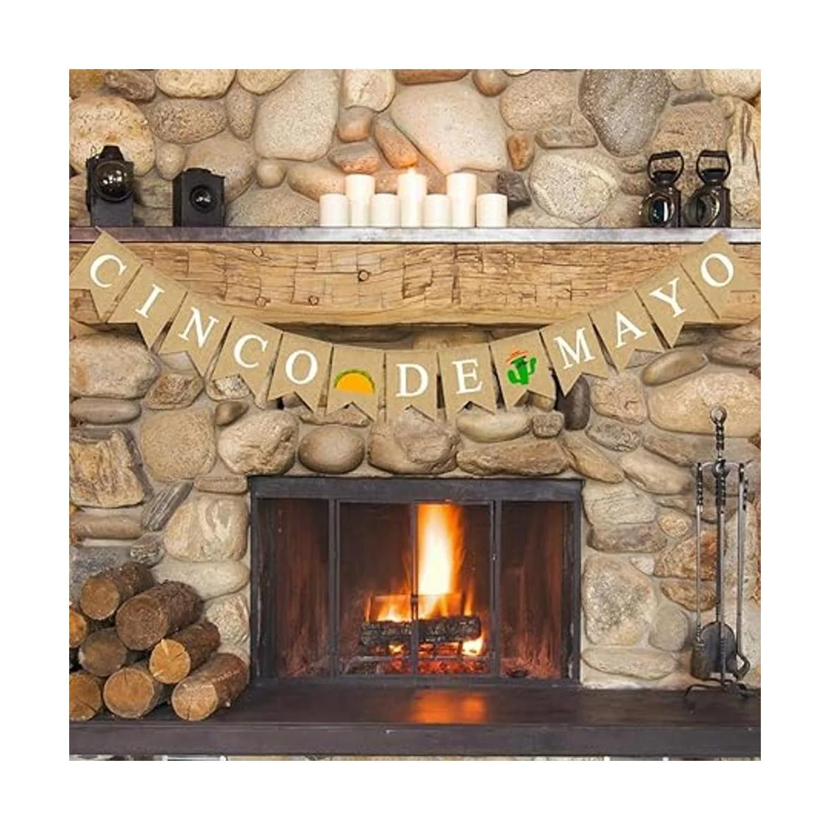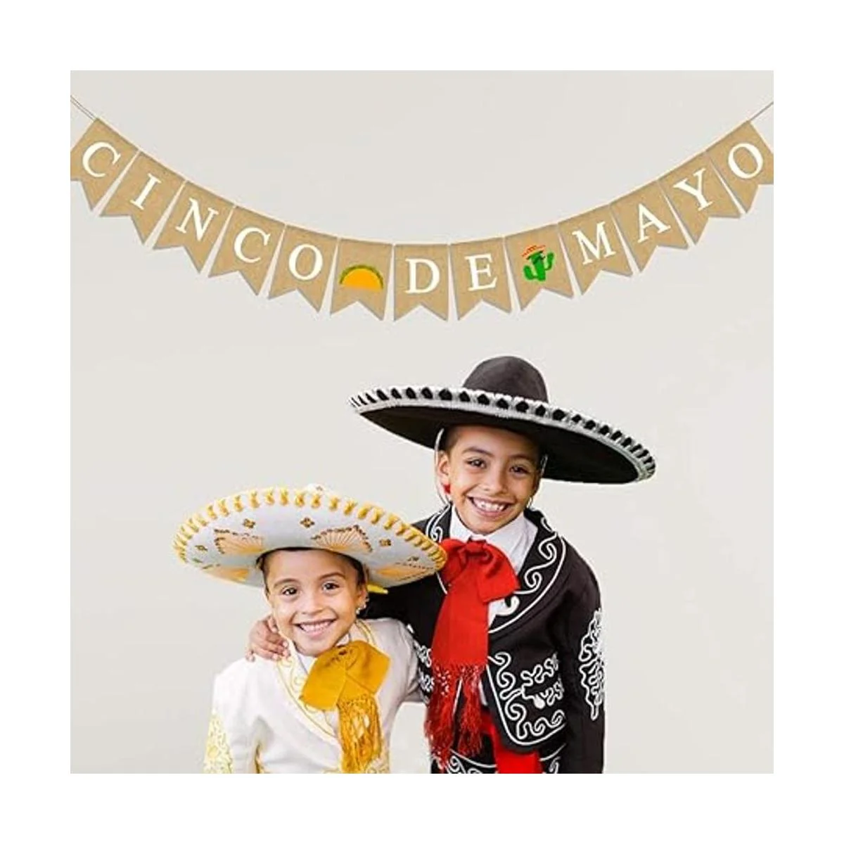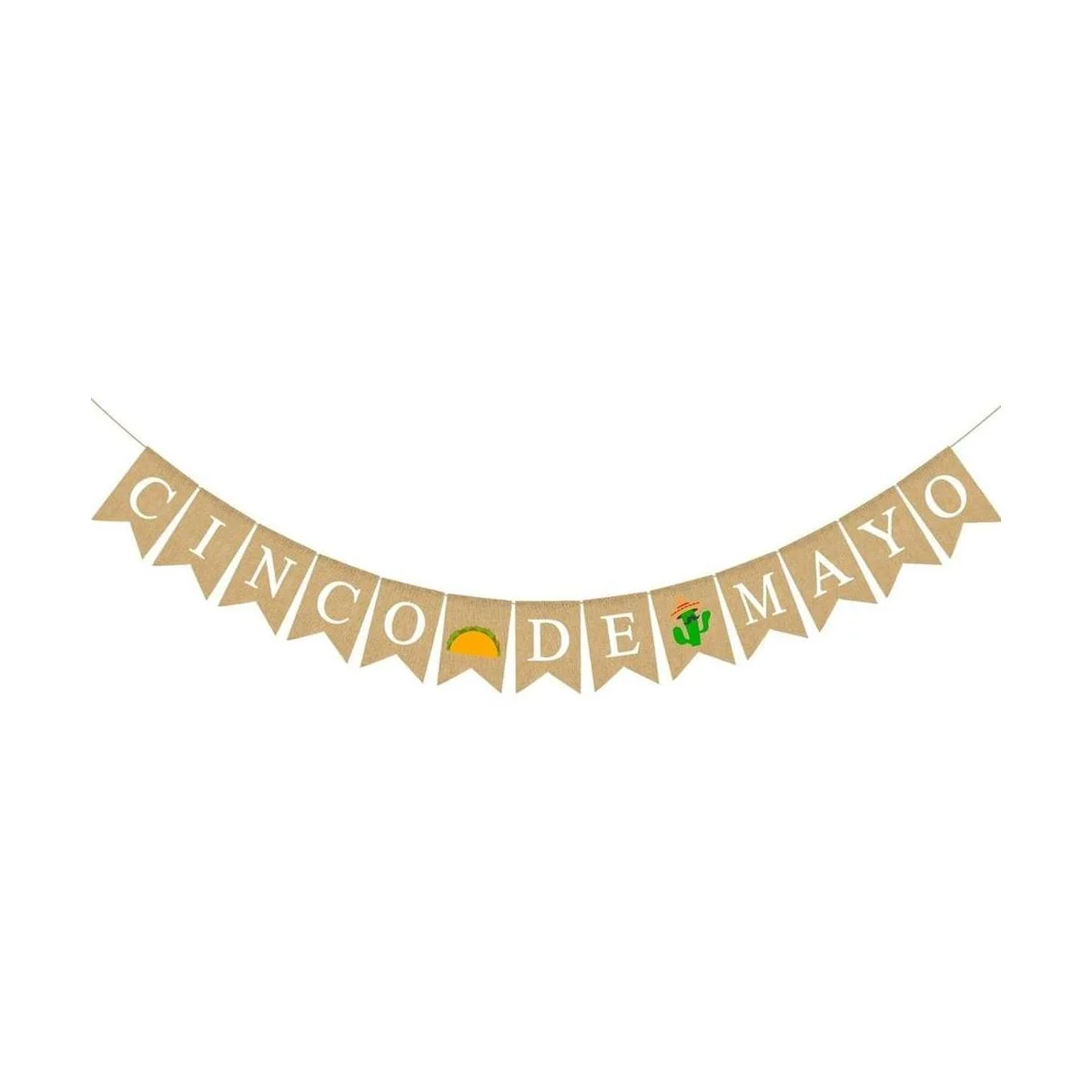 Pudodo Cinco De Mayo Banner de arpillera mexicano para fiesta de cactus