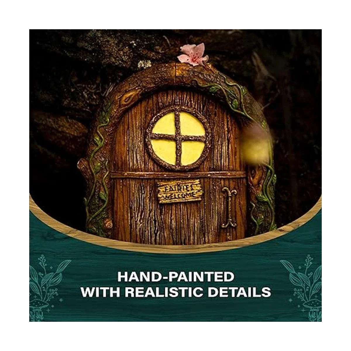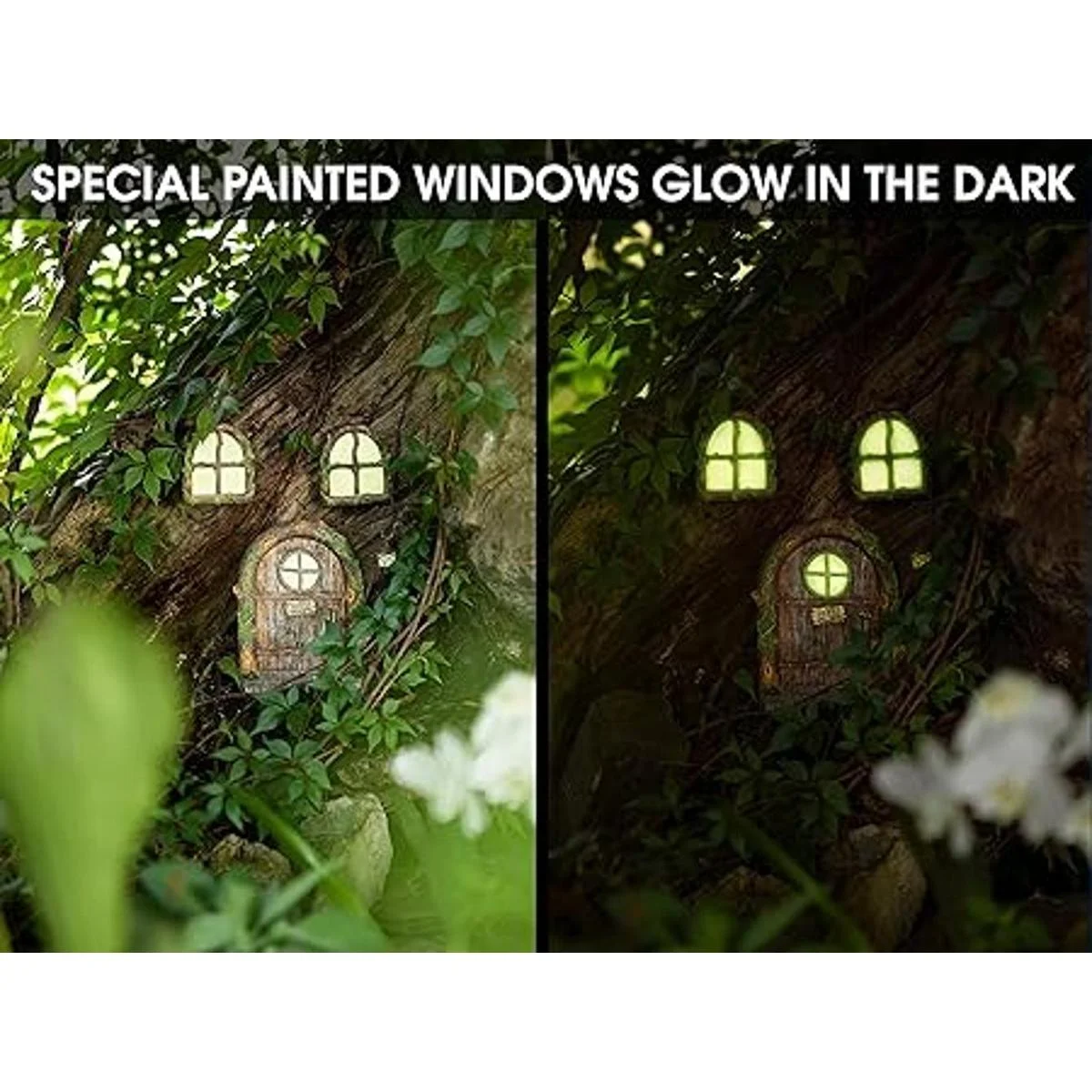 Brilla en la oscuridad: esta puerta de hadas para exteriores está bellamente pintada a mano y esculpida con detalles realistas y un aspecto natural del bosque. Incluye dos ventanas que brillan en la oscuridad que recogerán la luz solar durante el día para dar a tu jardín un aspecto caprichoso por la noche. Se ve absolutamente mágico anidado en la base de un árbol o oculto en los arbustos para que los más pequeños lo encuentren