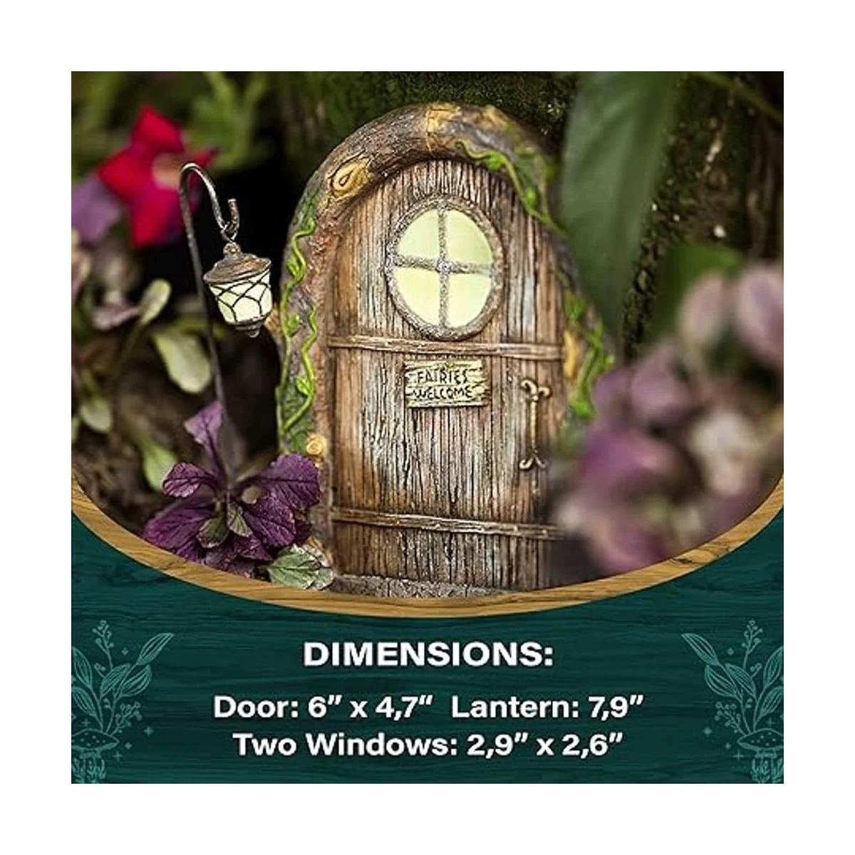 Puerta de hadas y ventanas para árboles, decoración de escultura artística que brilla en la oscuridad para habitación de los niños, pared y árboles al aire libre Accesorios de decoración de jardín de hadas en miniatura con linterna de hadas adicional