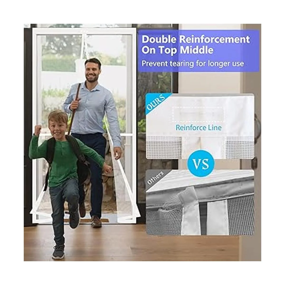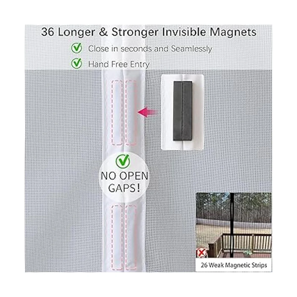 Puerta de pantalla magnética reforzada mejorada para puerta individual, 36 imanes más largos, imanes de fibra de vidrio resistente de malla blanca para puerta, cierre magnético de puerta deslizante para puerta frontal