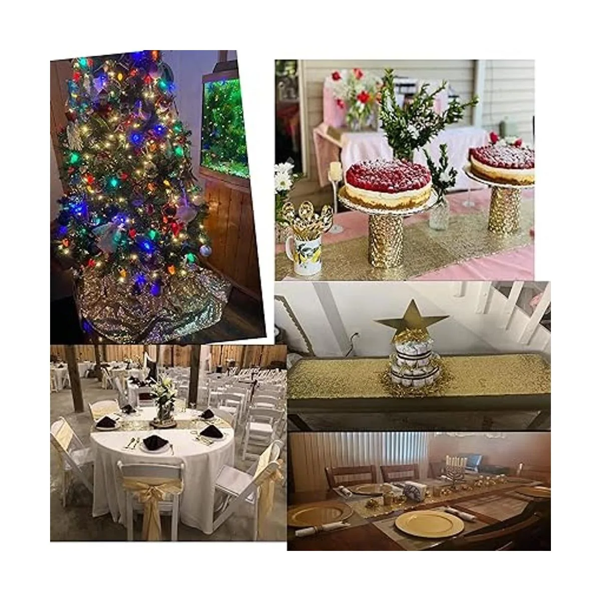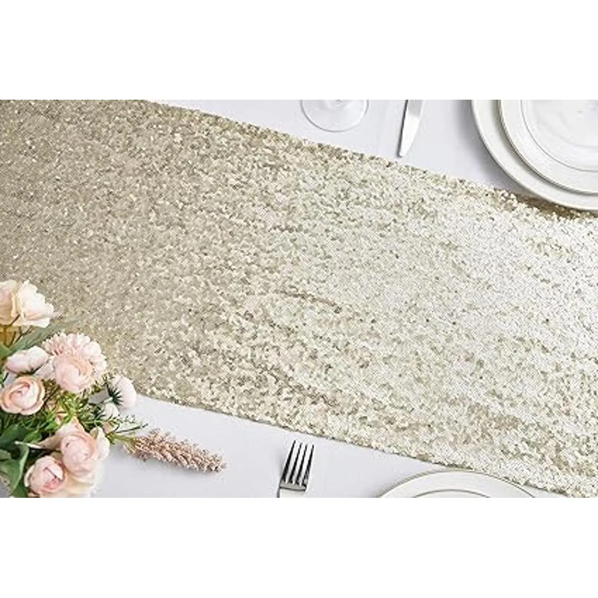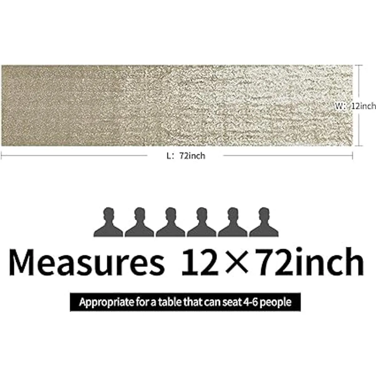 Tamaño: Este camino de mesa de lentejuelas doradas mide 12 x 72 pulgadas, por lo que es adecuado para mesas para 4 a 6 personas.