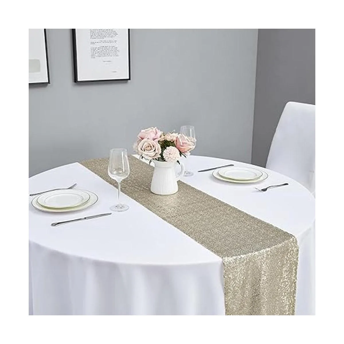 Alta calidad: Material ligero y sin arrugas. Este camino de mesa brillante le añade encanto a los manteles normales, dando a las mesas un aspecto perfecto y mejorando el ambiente para tu evento.