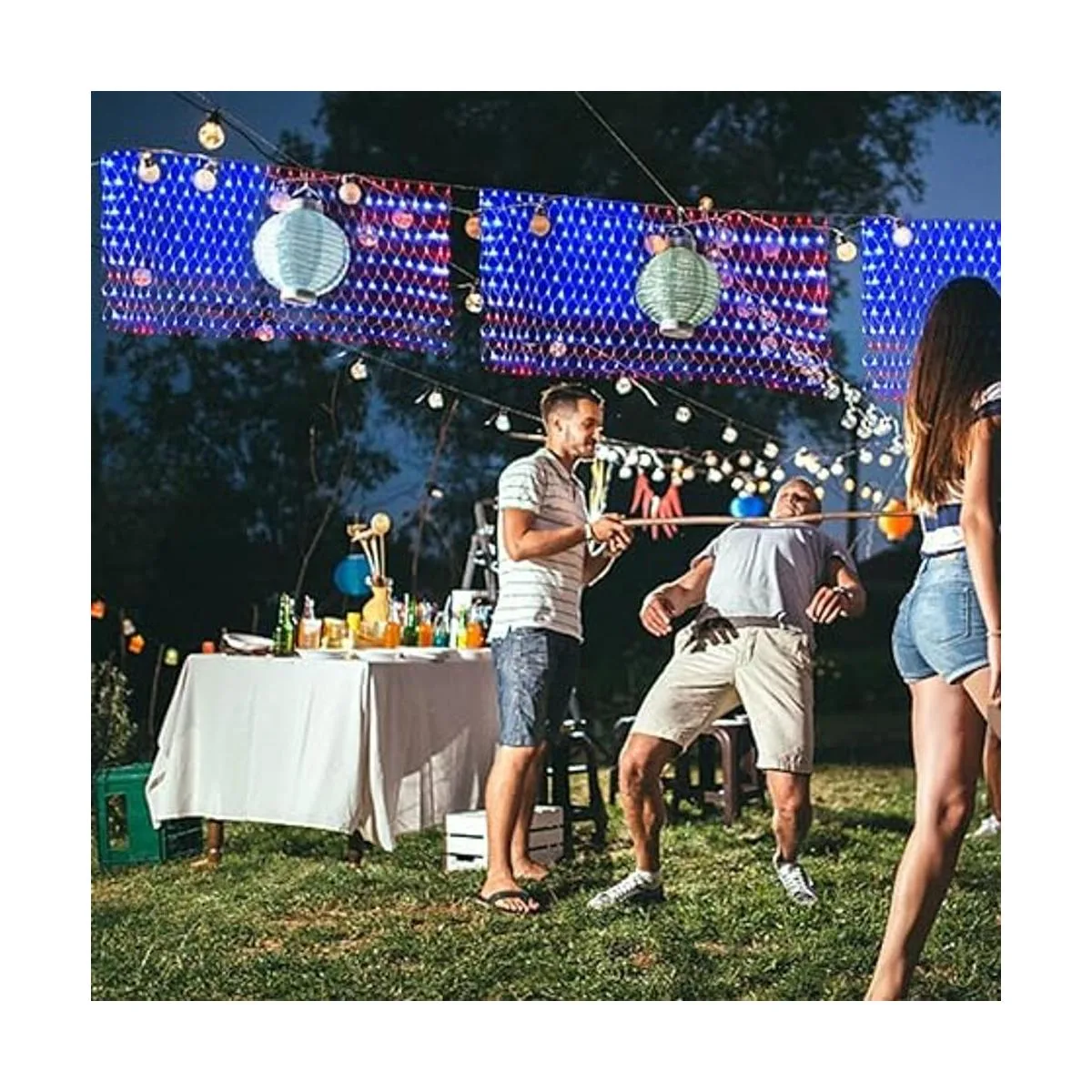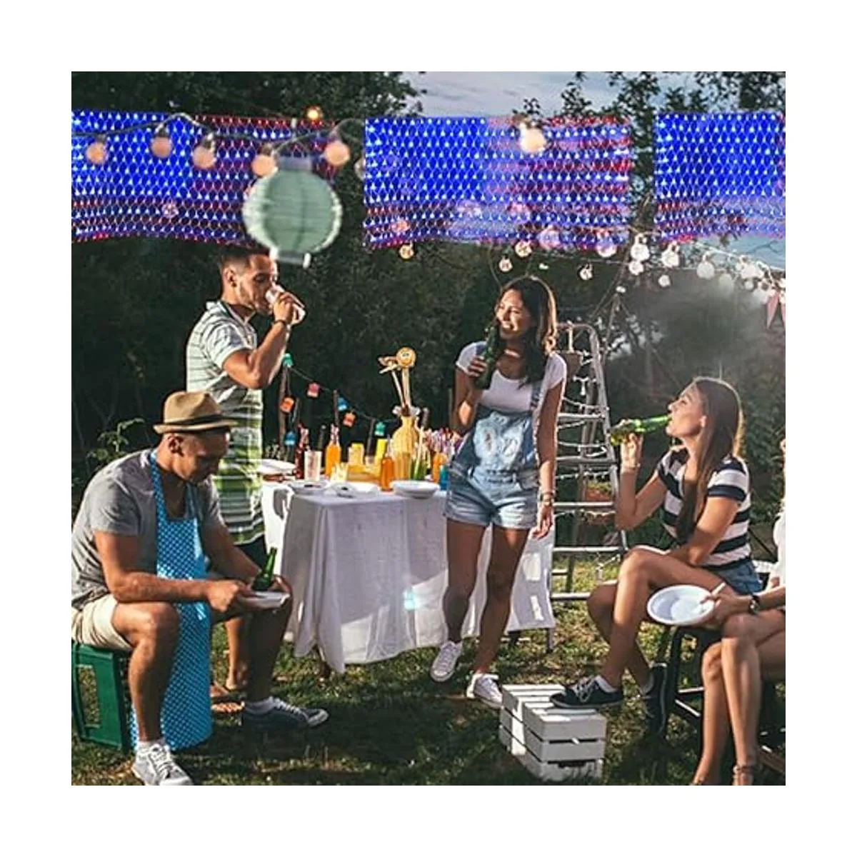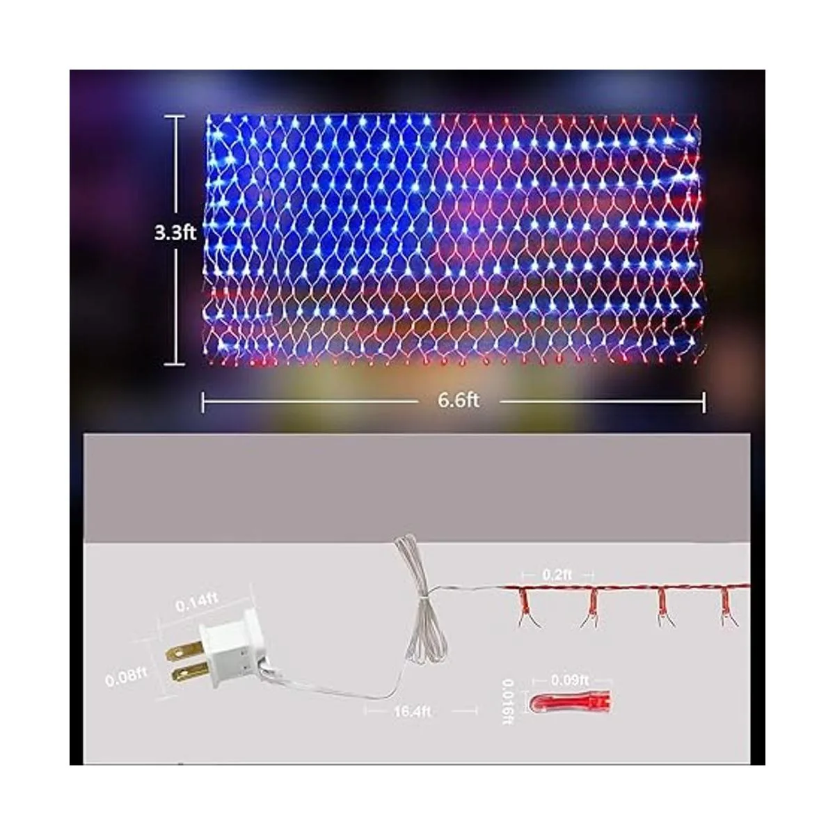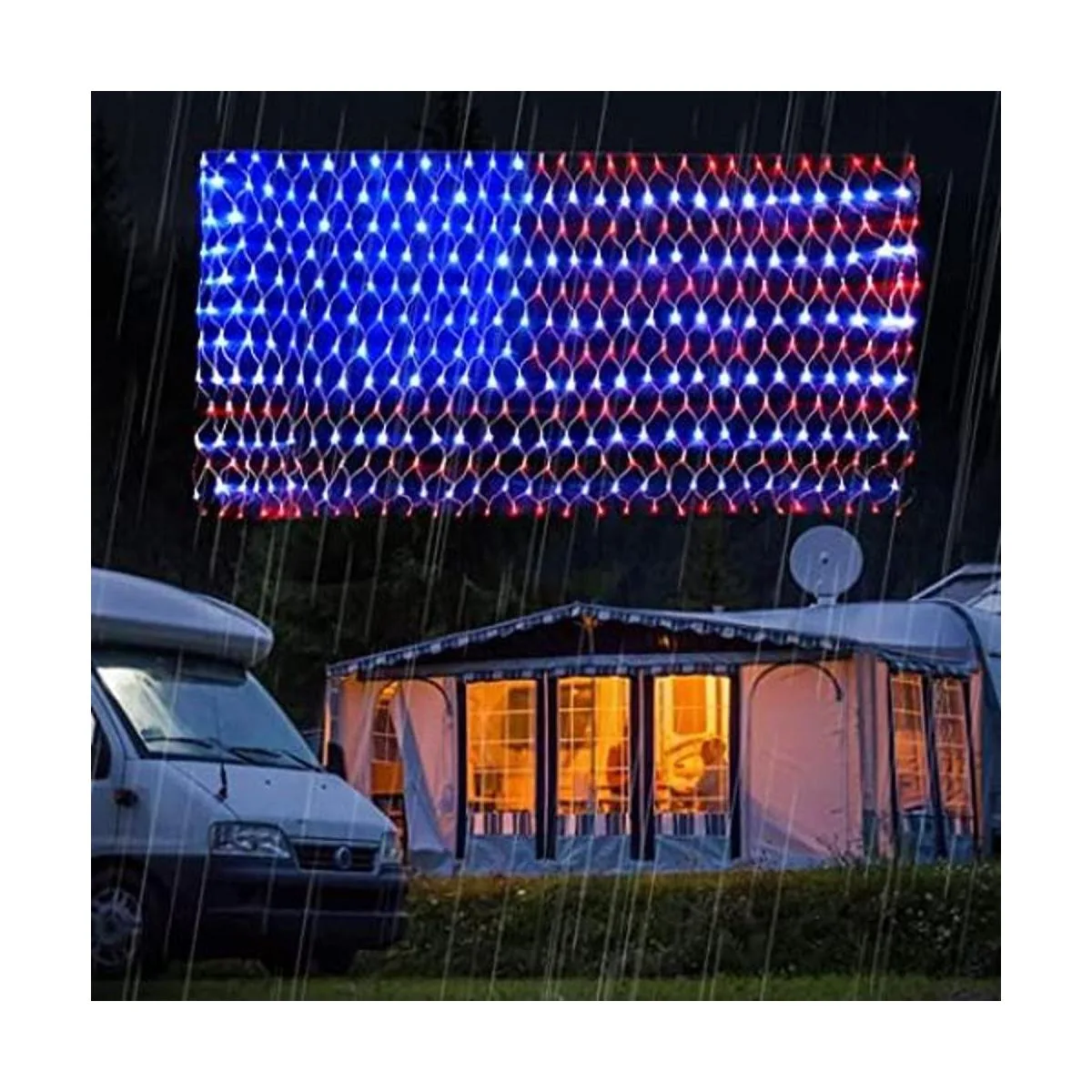PUHONG Luces de red de bandera estadounidense, 420 luces LED de bandera de Estados Unidos, adornos patrióticos impermeables al aire libre para el Día de la Independencia, Día Nacional, 4 de julio, Día de los Caídos, Navidad, Año Nuevo, decoración de patio