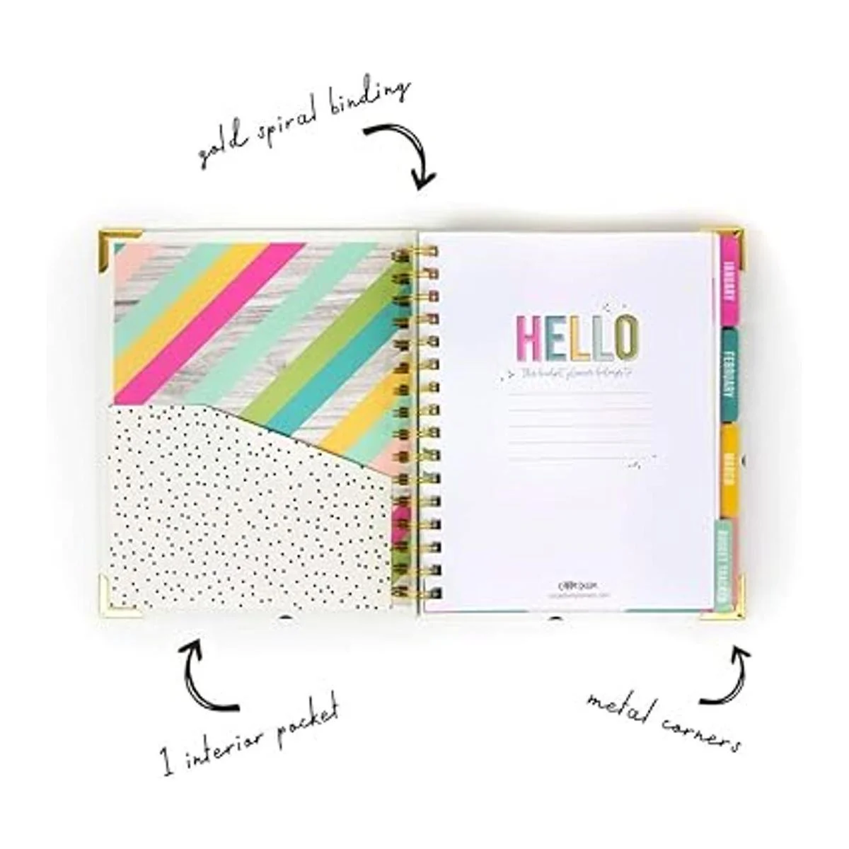 Pukka Pad, Carpe Diem Cuaderno encuadernado en espiral, incluye agenda de 12 meses con divisores, insertos de seguimiento y hojas de calcomanías
