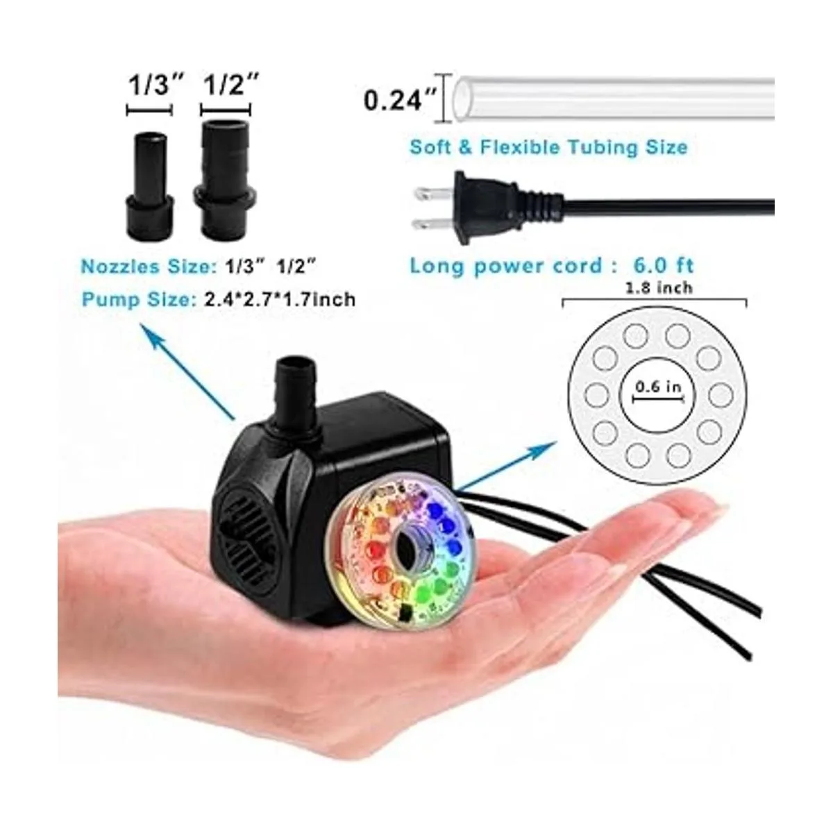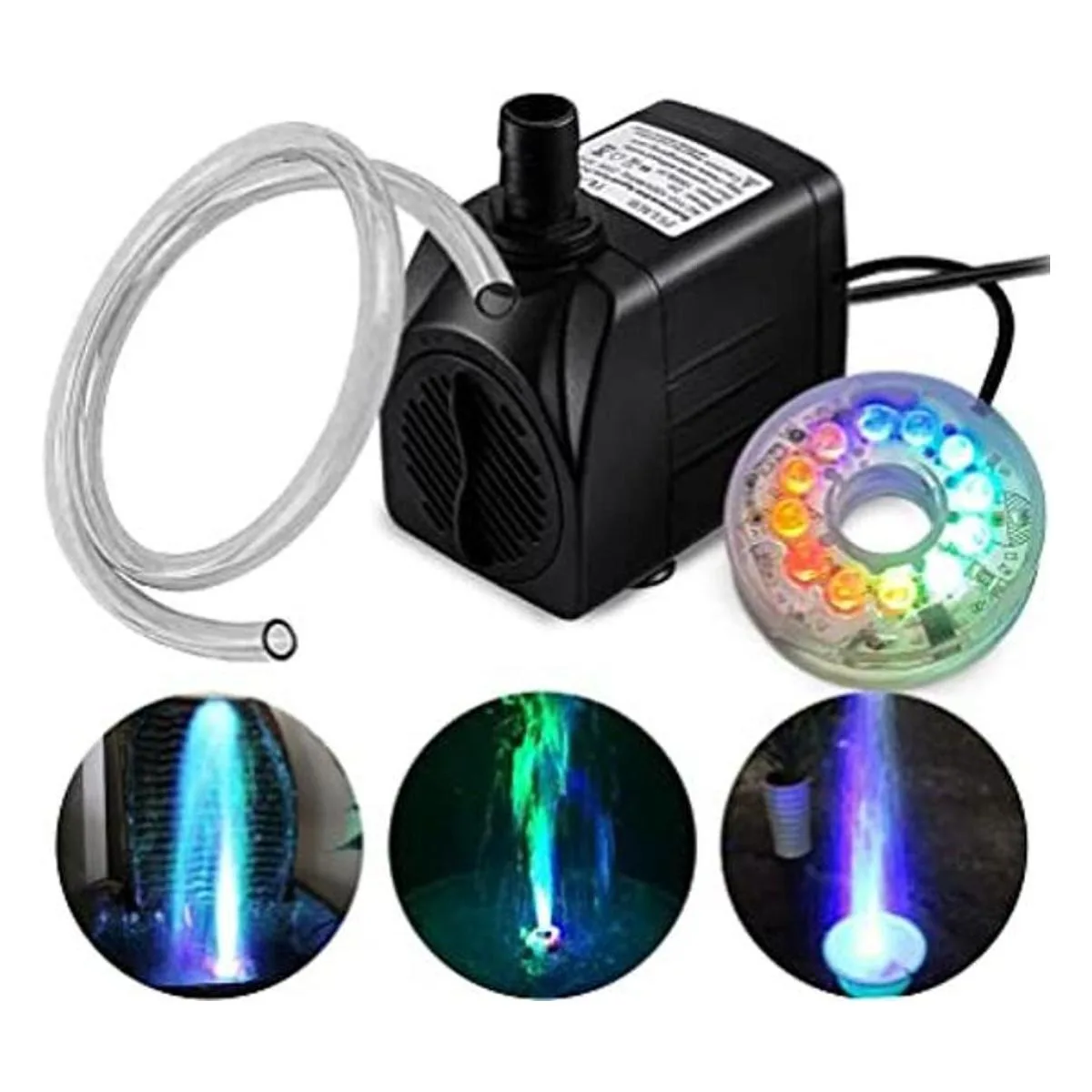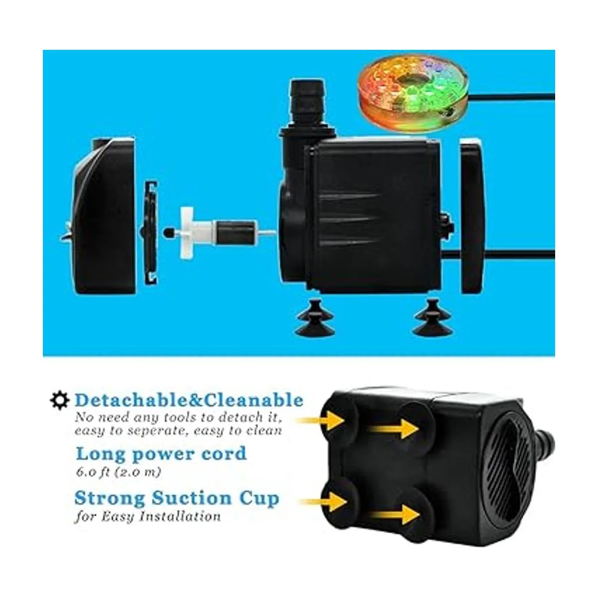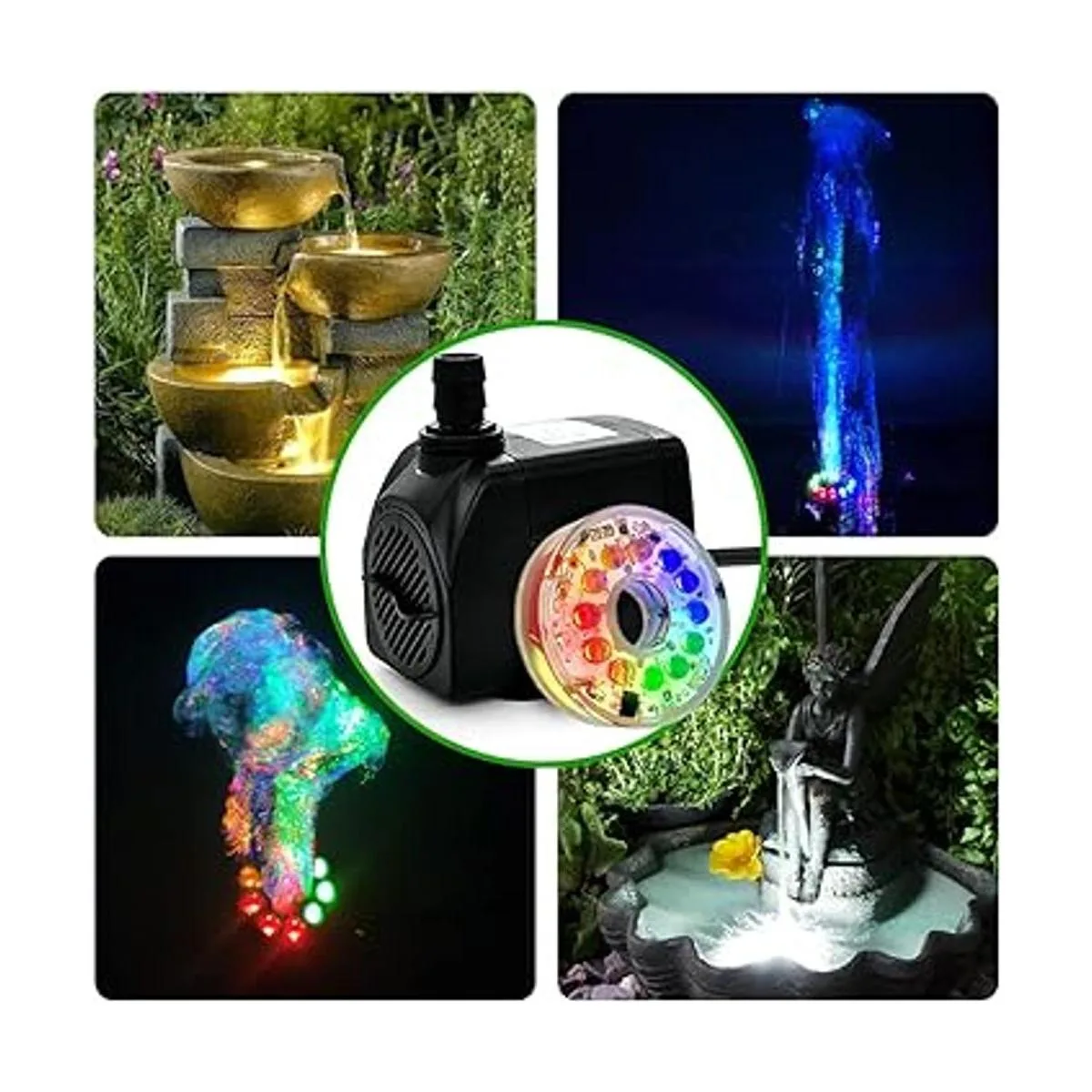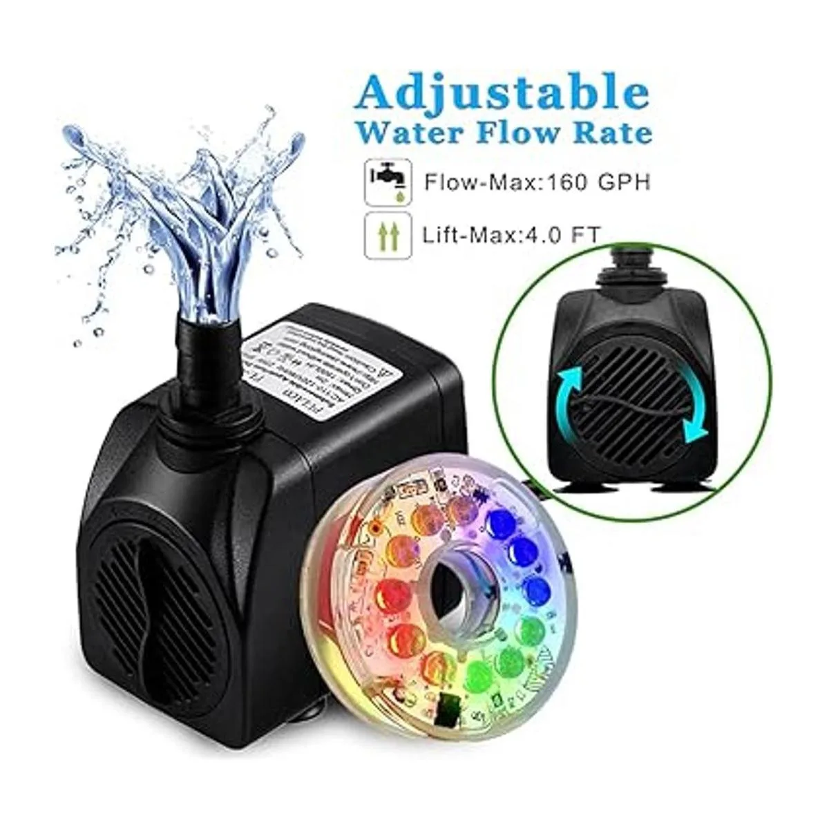 PULACO Bomba de fuente sumergible de 10 vatios y 160 GPH con luz LED para fuente de agua, estanque al aire libre, peceras de acuario, fuente de decoración del hogar