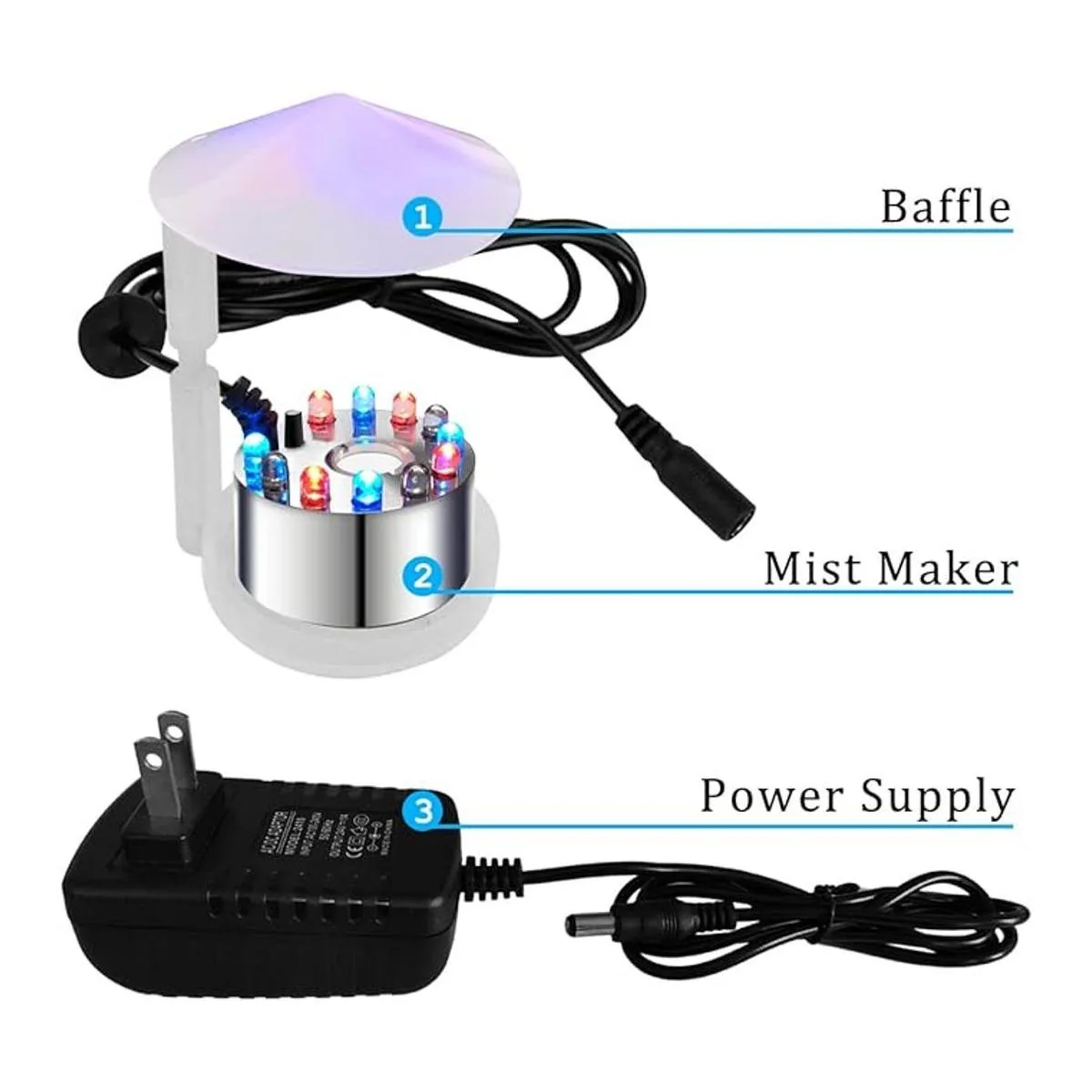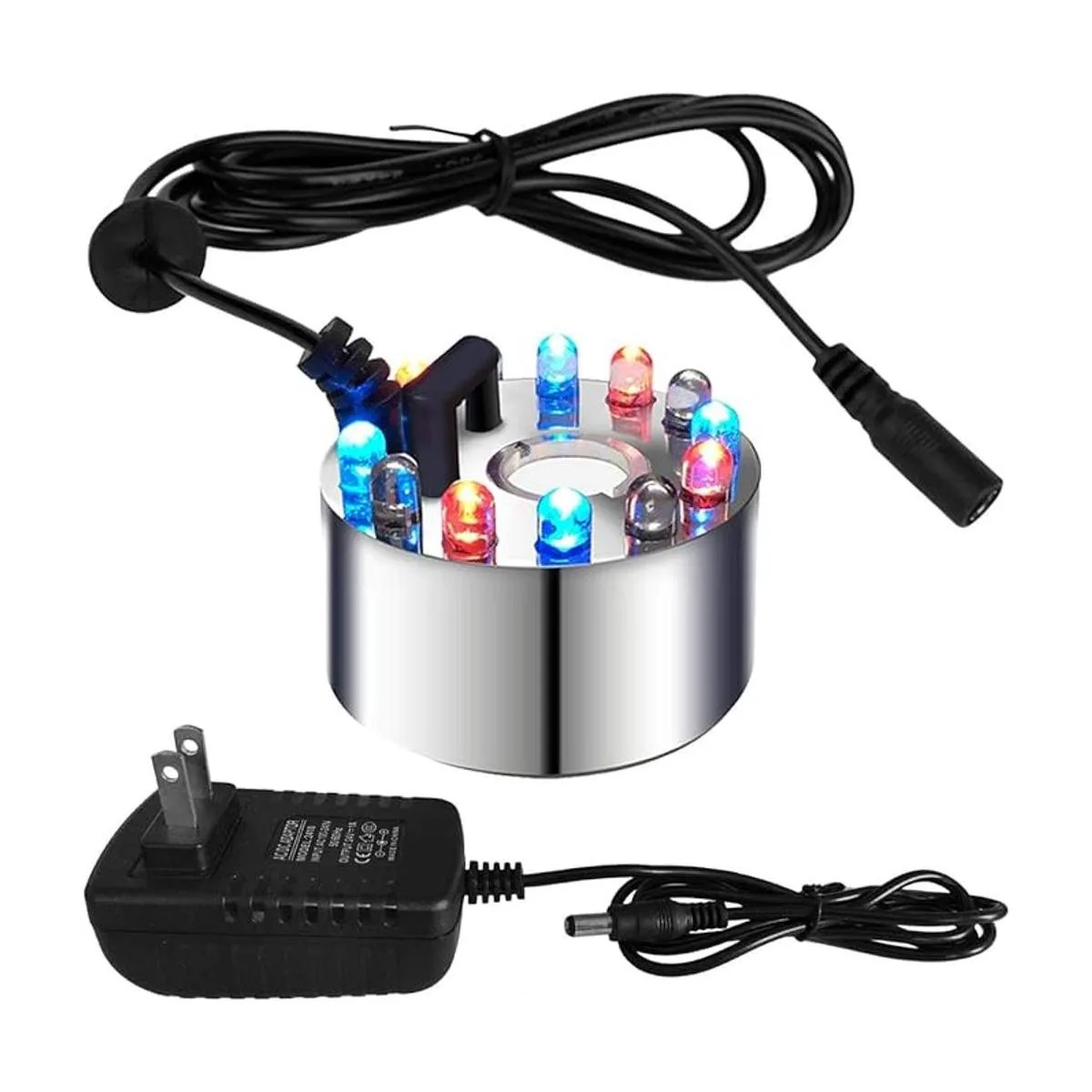 PULACO Mini máquina de niebla, 12 LED Mister Fogger, fuente de agua, estanque, máquina de niebla, atomizador, humidificador de aire, fuente interior, nieblas, perfecto para Halloween, Navidad y otras festividades