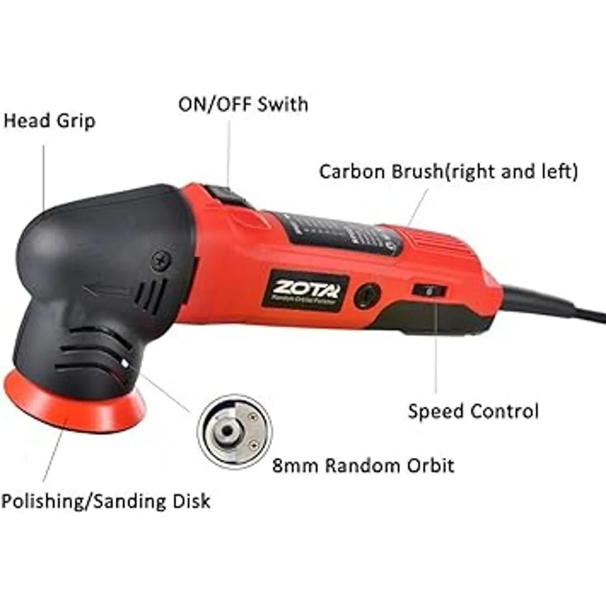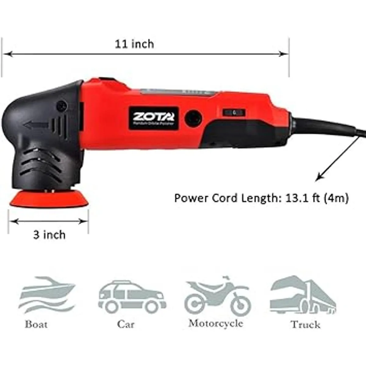 Pulidora Orbital ZOTA, pulidor Orbital de 3 pulgadas con cable de 13,1 pies, minikit de pulidora rotativa portátil con 3 almohadillas de pulido y toalla de microfibra.