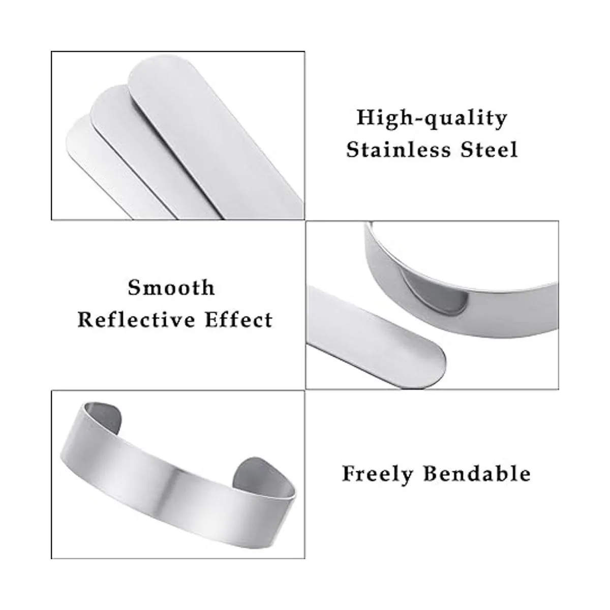 Duradero de llevar: cada pulsera está hecha de acero inoxidable que es a la vez fuerte y duradero pero maleable, puede permitir que se doble y moldee la pulsera de acuerdo a su favor mientras mantiene su forma, buena calidad te ayuda a crear algunas de las hermosas piezas de arte.