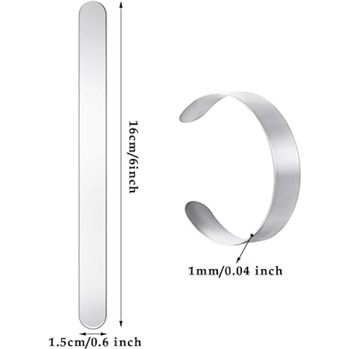 Pulsera de 16 piezas de acero inoxidable en blanco, brazalete para bricolaje, bisutería, personalización, 58 x 6 pulgadas