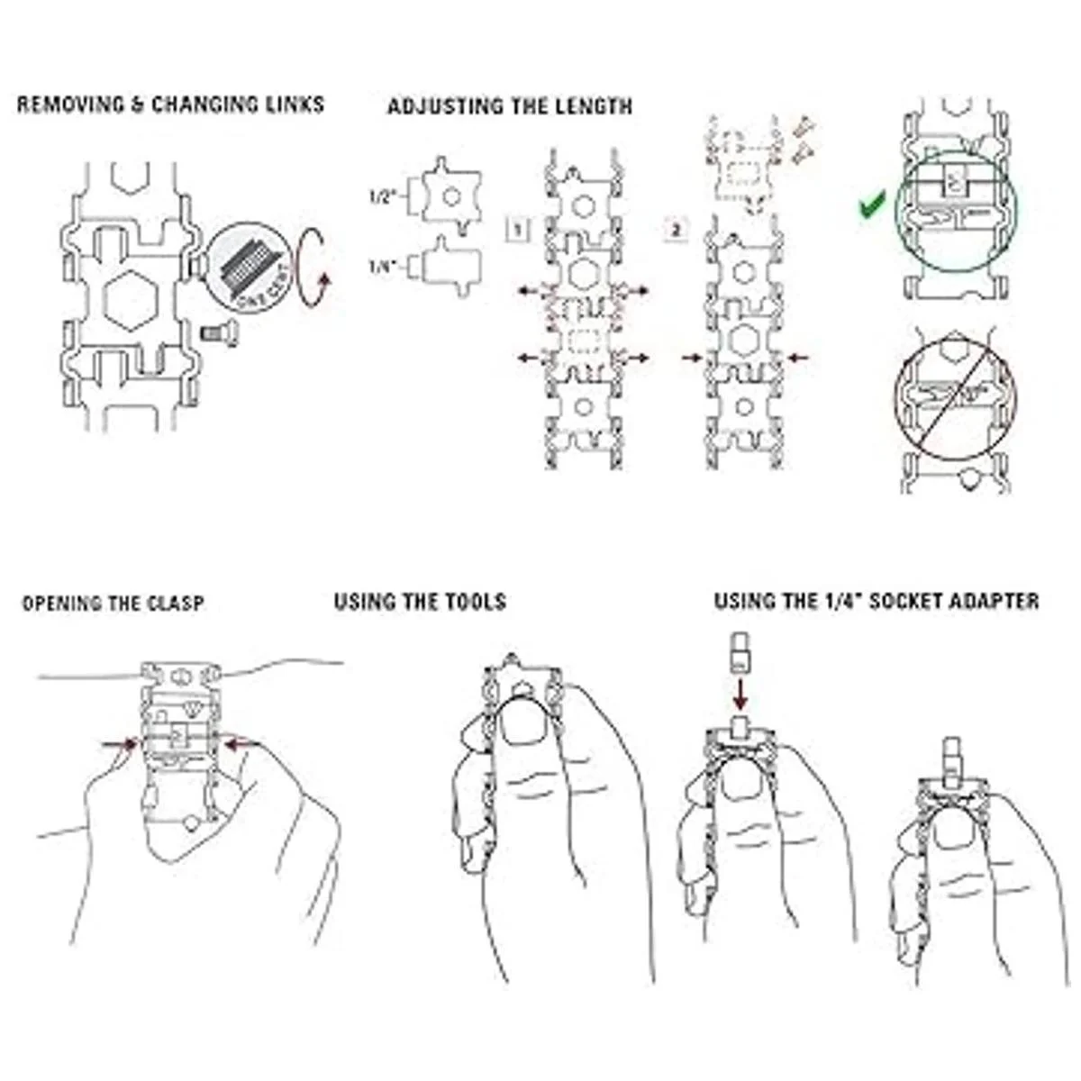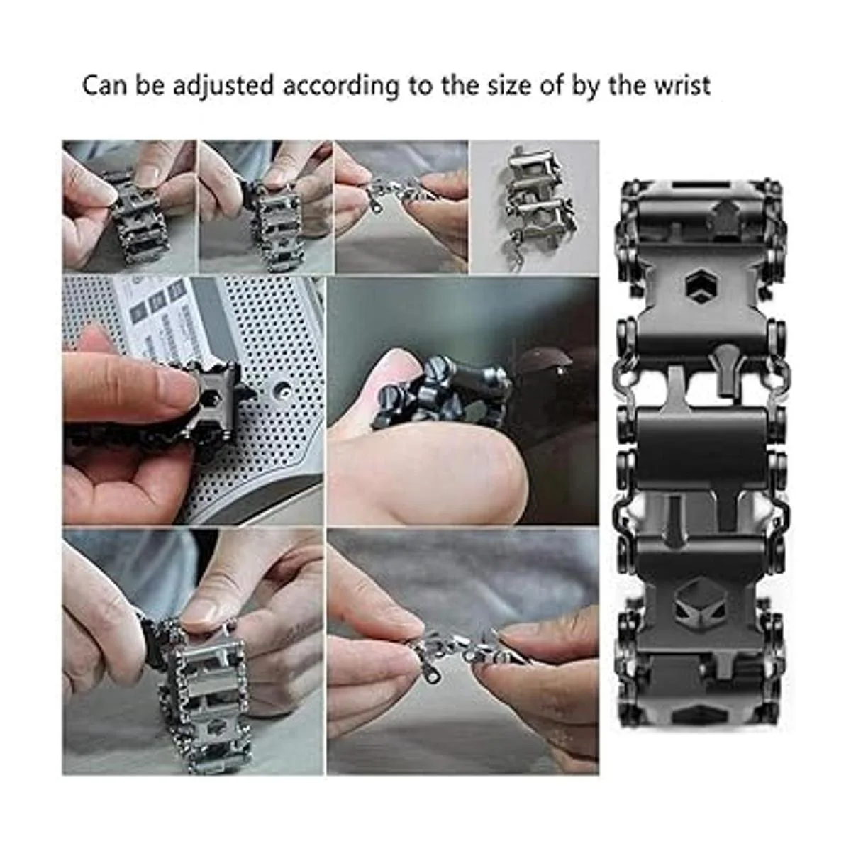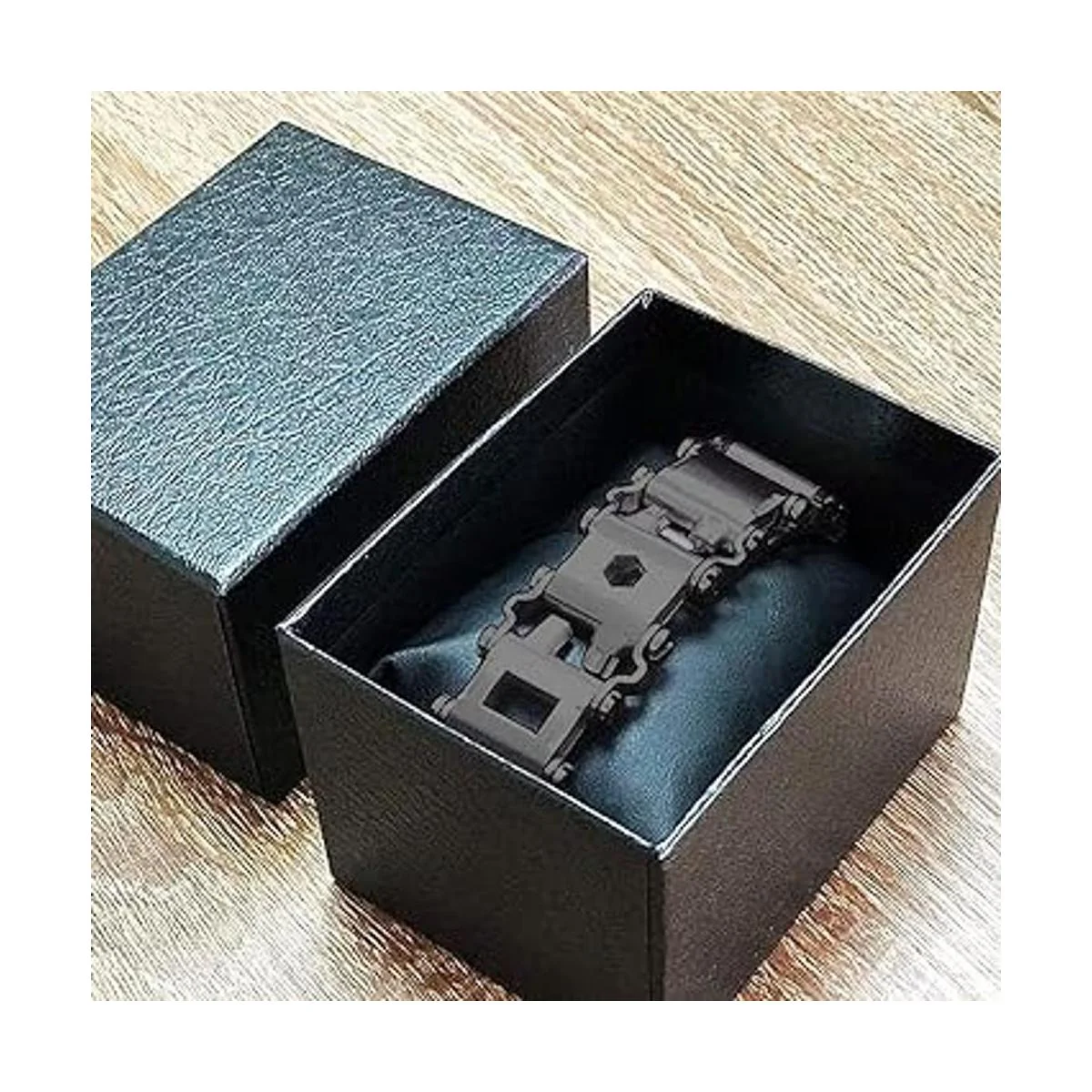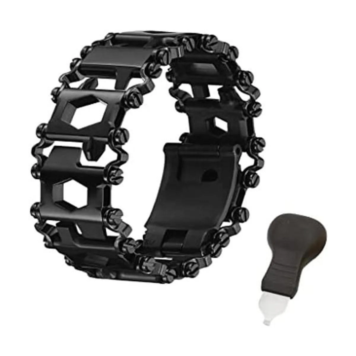Pulsera multiherramienta 29 en 1, acero inoxidable de 8.7 in, pulsera multiherramienta para hombres, correa de reloj de viaje al aire libre, pulseras multifuncionales, pulsera de tendencia multiherramienta portátil con una herramienta de palanca negro