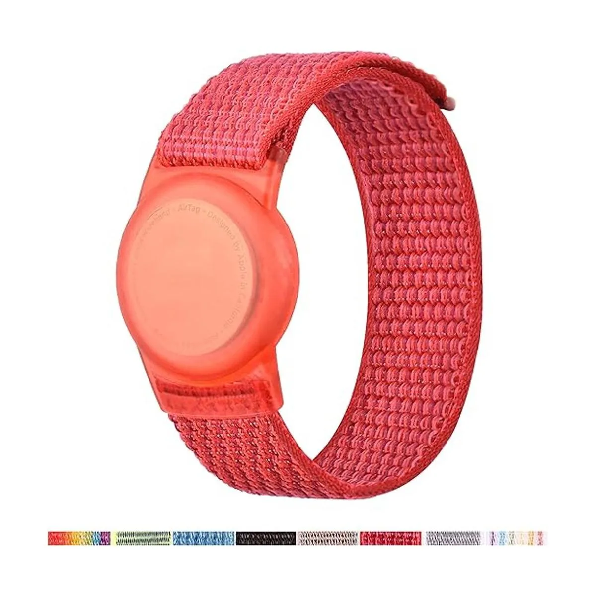 Pulsera para Apple AirTag caso, pulsera con soporte para accesorios de etiqueta de aire, funda de rastreador GPS para niños y niñas mayores, correa de reloj de nailon transpirable suave y ligera rojo