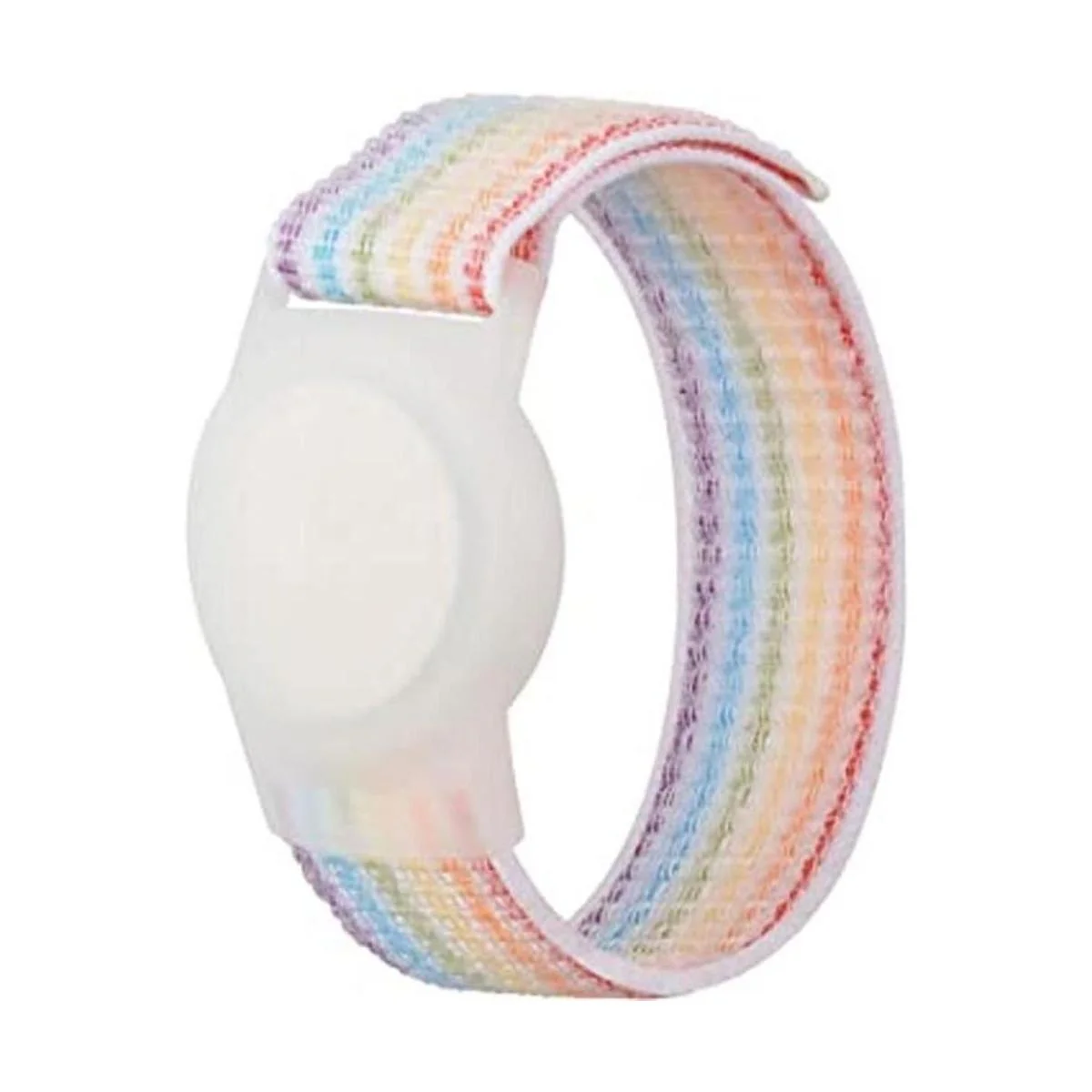 Pulsera para niños compatible con Apple AirTag, funda protectora para Air Tag GPS con pulsera de nailon, correa de reloj ajustable antipérdida para niños pequeños y ancianos arco iris A