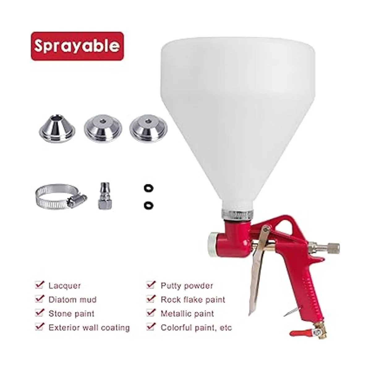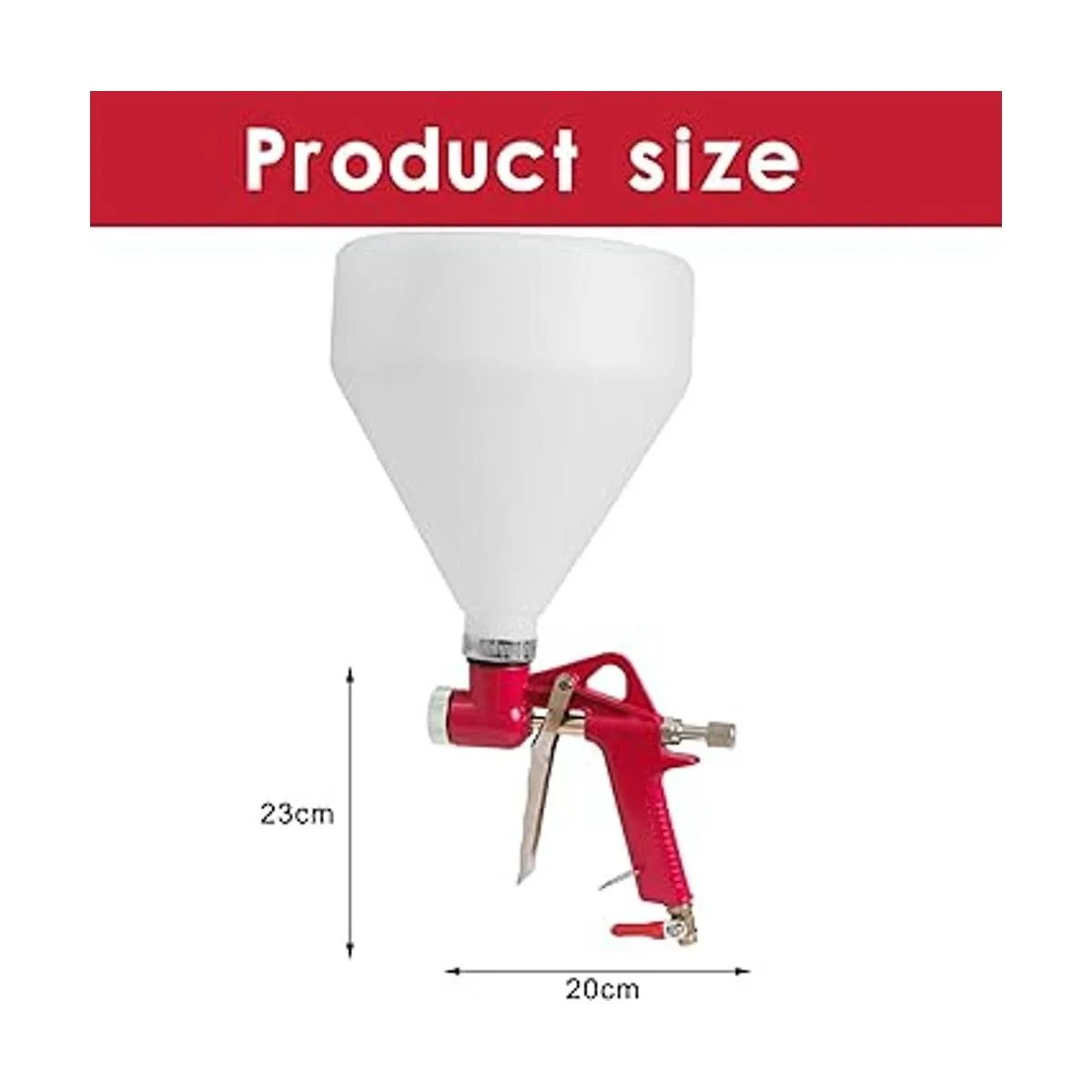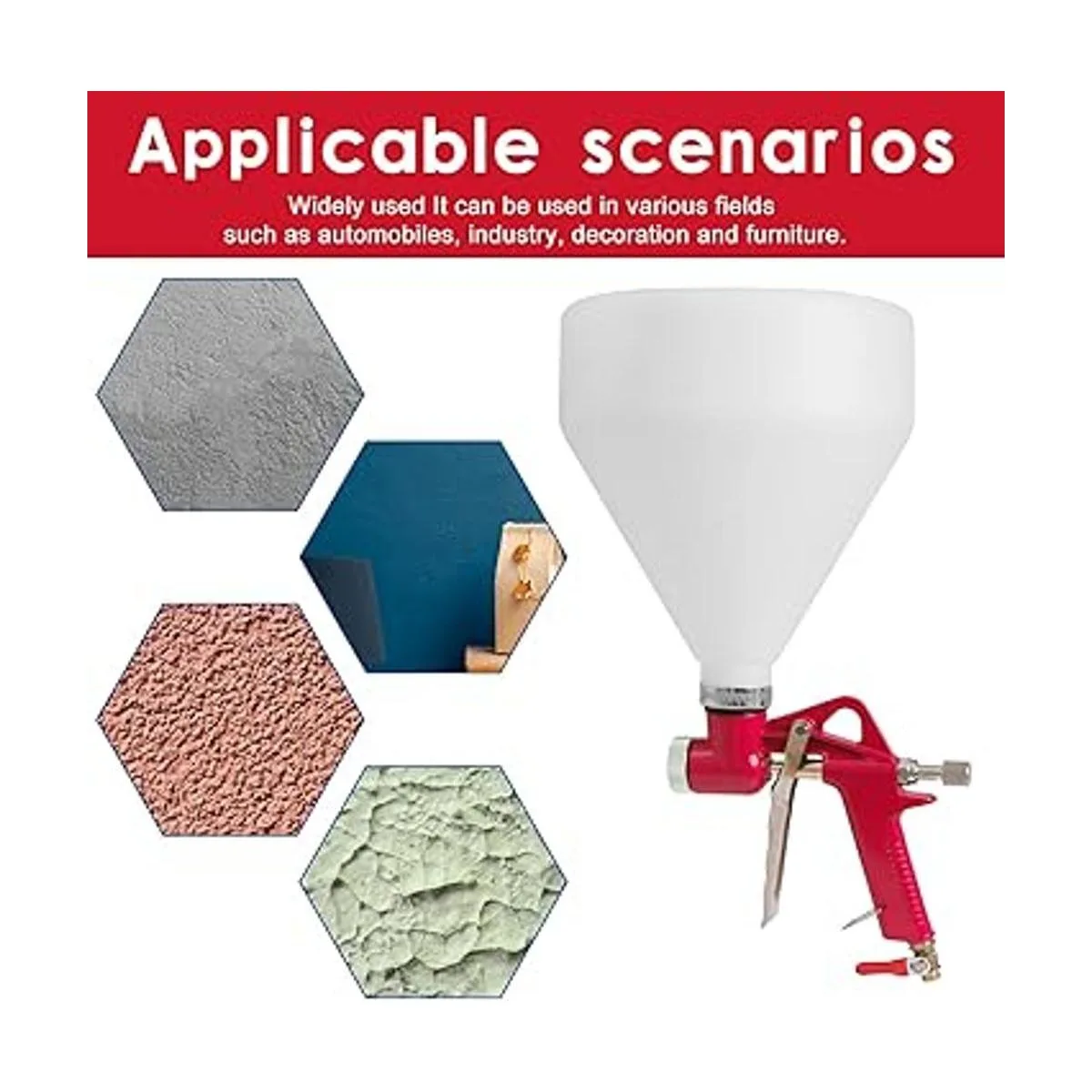 Duradero: el cuerpo de la de textura está hecho de aleación de aluminio, y la tolva está hecha de plástico, que es resistente al desgaste y a la corrosión. Se puede utilizar durante mucho tiempo. La tolva de plástico tiene buena transparencia y puede ver la posición de la pintura restante, lo que puede ahorrar tiempo.