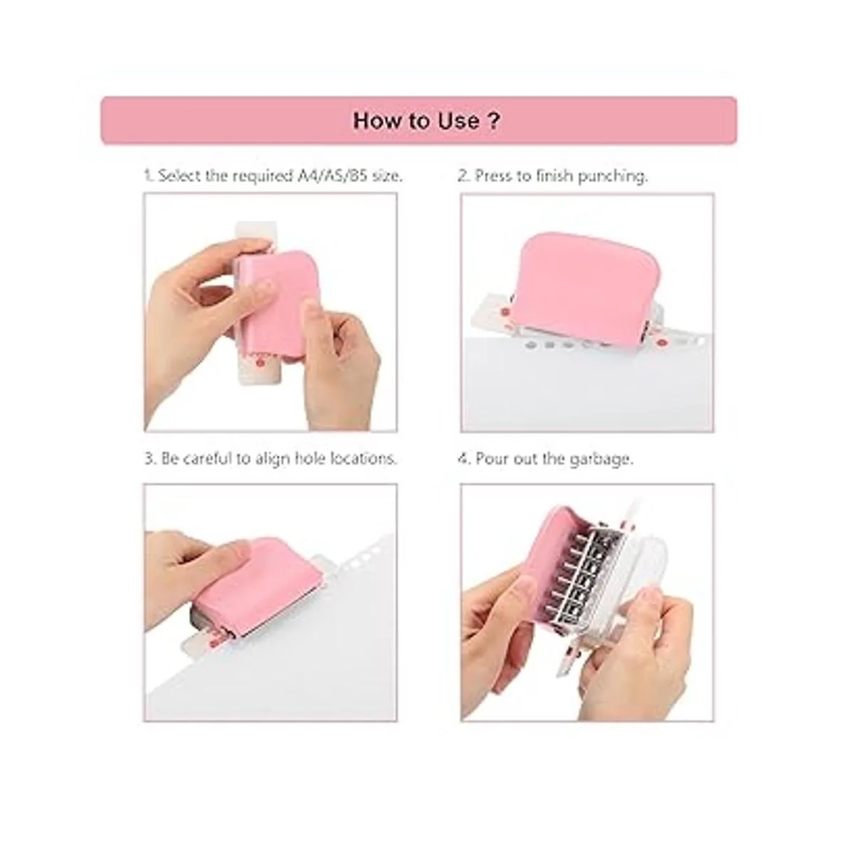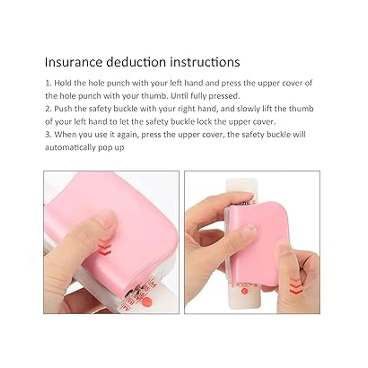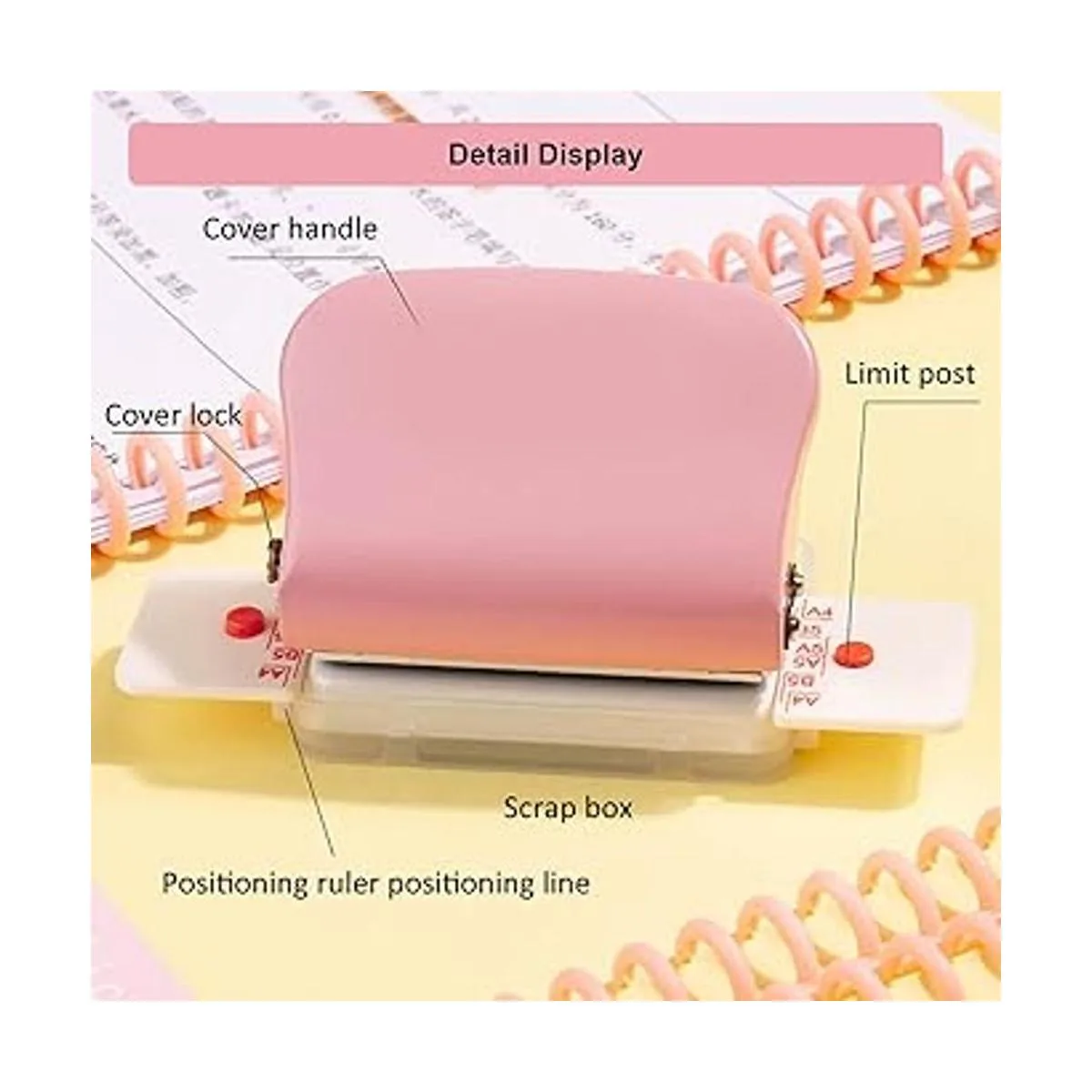Agarre cómodo: el perforador de agujeros de hasta 5 hojas de papel se pueden imprimir a la vez, pequeño y exquisito, cómodo de sostener. Hay columnas de posicionamiento móviles en ambos lados del fuselaje para ayudar a posicionar la futura distancia del agujero de perforación.