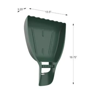 PRODUCT DETAILS Length Across: 13.5 inches, Vertical Height: 19.75 inches, Depth: 3.25 inches, Material: Durable Plastic, Dark Green. Rugged edges for optimal pick up. Comes in set of 2.