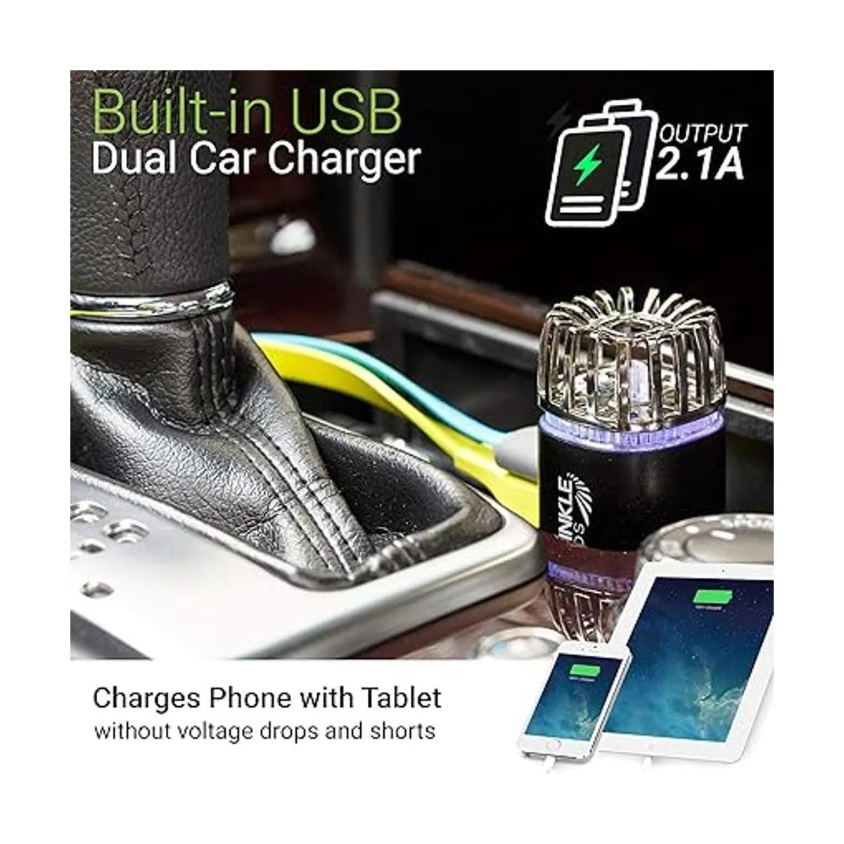 Purificador ionizante de aire para automóvil, desodorante ionizante antimicrobiano para enchufe de 12 V, con dos cargadores USB, elimina del auto el olor a humo, mascotas y alimentos negro mate