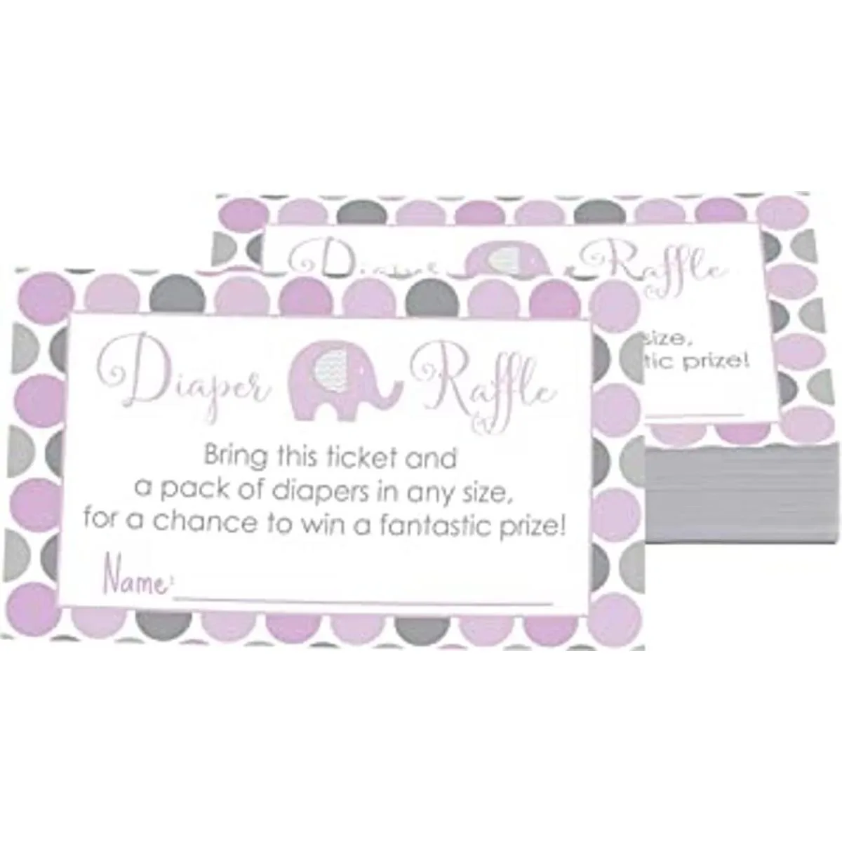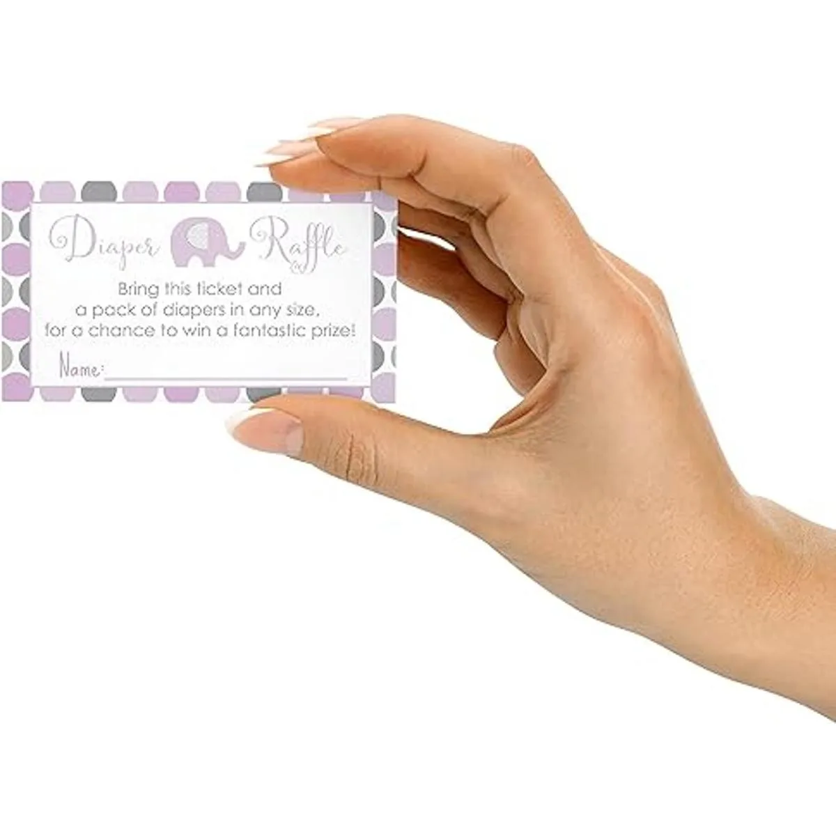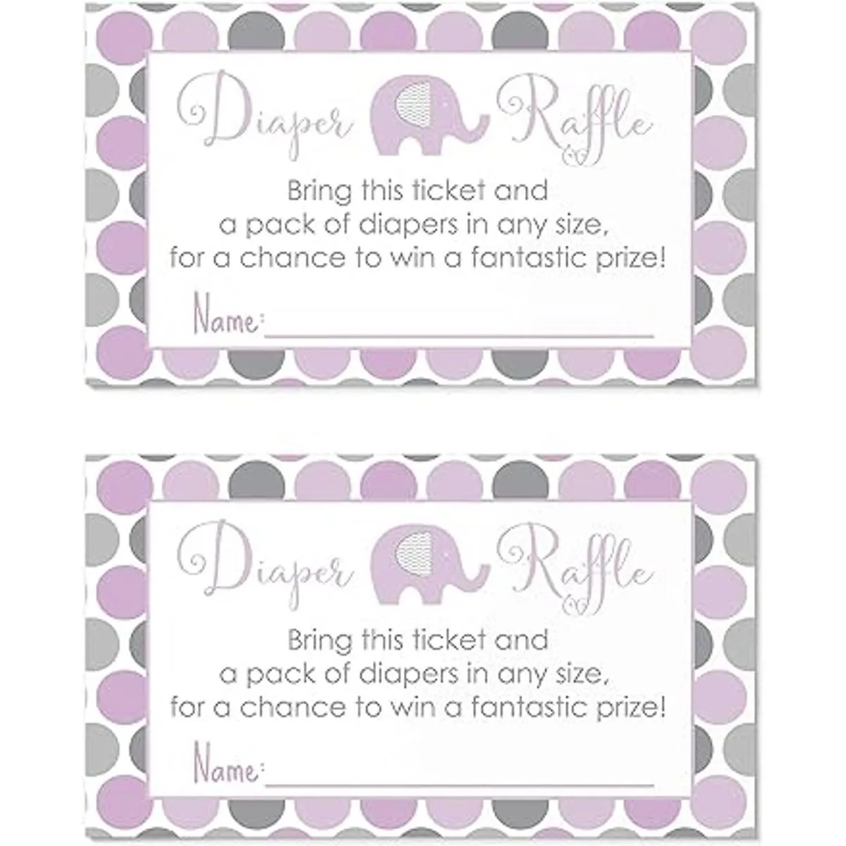 Purple Elephant Ticket de la rifa del pañal 25 tarjetas Juegos de la ducha del bebé Insertos de invitación Dibujos para la actividad de espolvorear Niñas Little Peanut Animal Theme