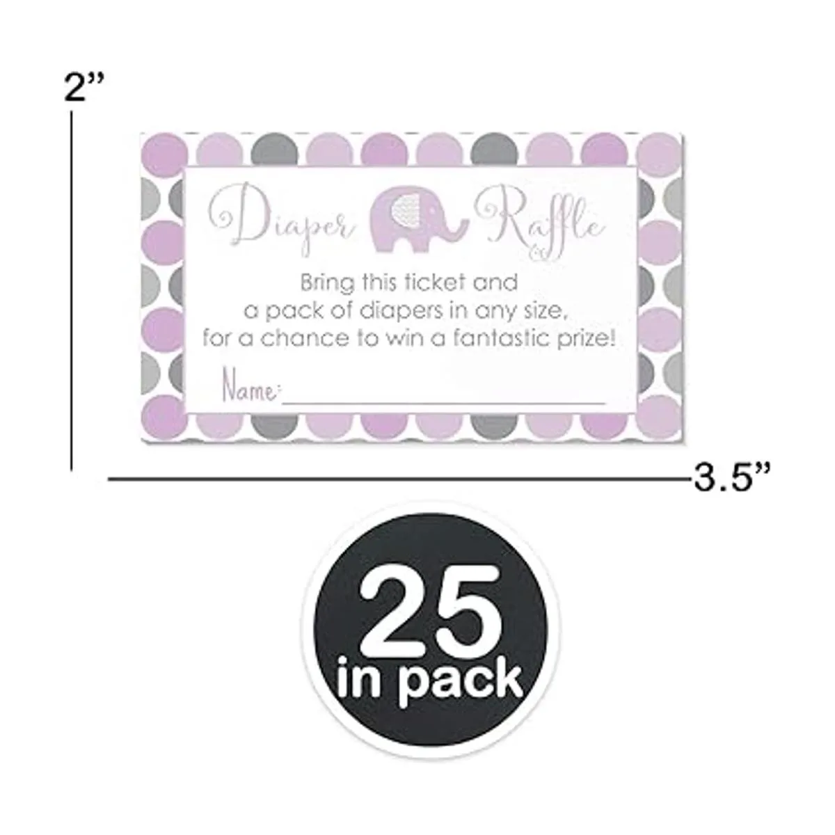 Purple Elephant Ticket de la rifa del pañal (25 tarjetas) Juegos de la ducha del bebé – Insertos de invitación – Dibujos para la actividad de espolvorear – Niñas Little Peanut Animal Theme