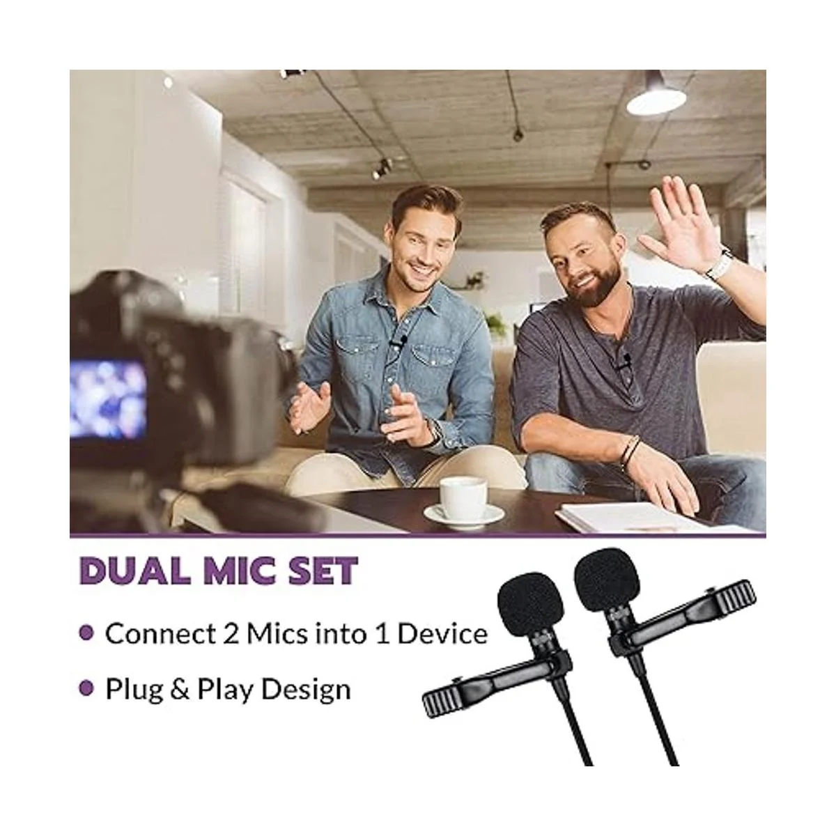 Captura audio de alta calidad para tu entrevista o podcast con este kit de micrófono lavalier dual; su diseño Plug and Play es rápido y fácil de usar; sin necesidad de baterías o ajustes complicados; perfecto para entrevistas de 2 personas, podcasts y vlogging