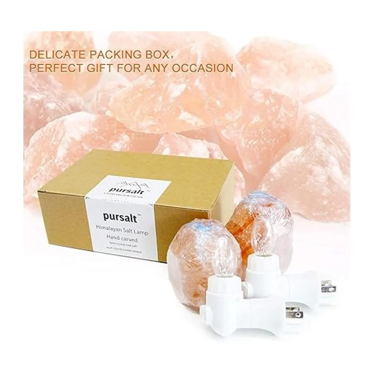 Pursalt Paquete de 2 lámparas de sal natural del Himalaya, enchufe de pared giratorio de 360 grados con 4 bombillas de repuesto adicionales para baño, dormitorio, sal de roca de cristal rosa hecha a mano