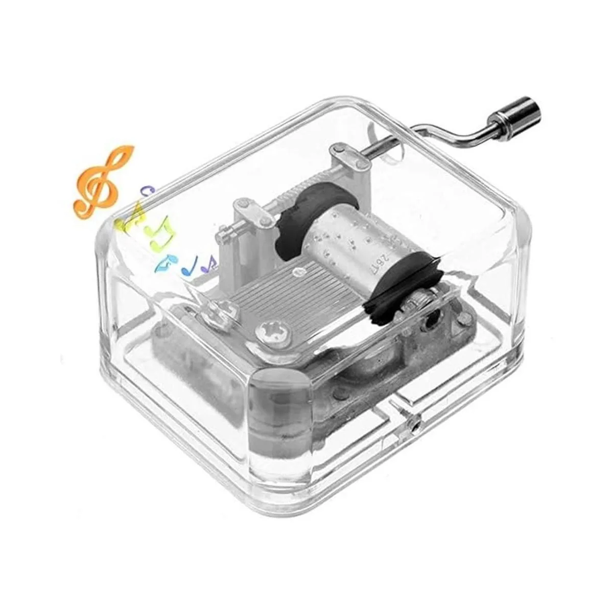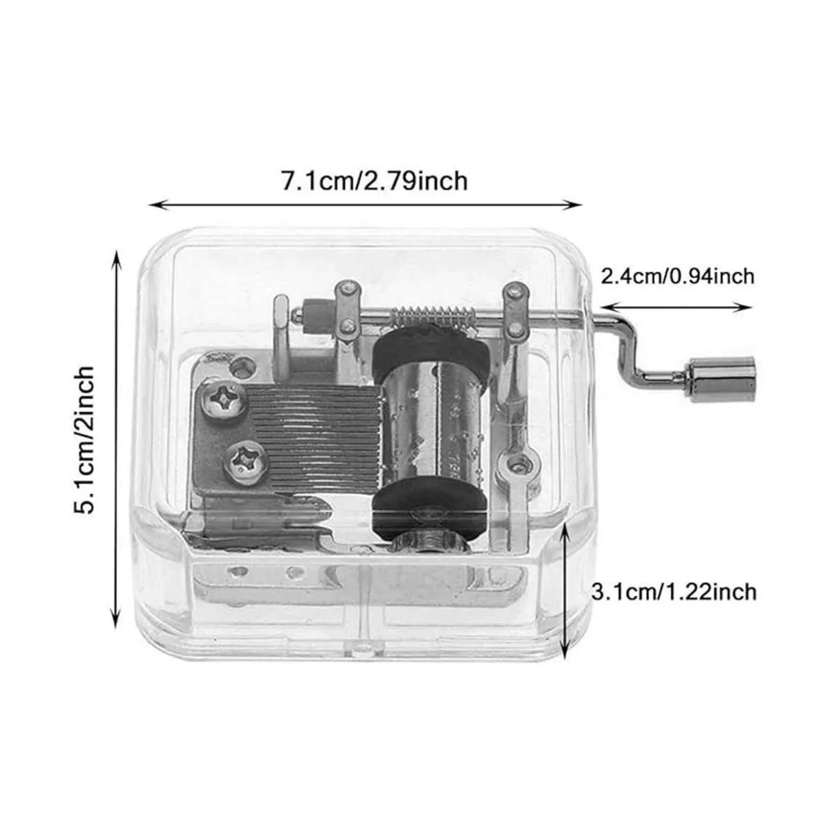 Material resistente: hermosa afinación y calidad. El exterior de la caja de música está hecho de acrílico, el interior y la manivela están chapados en plata.