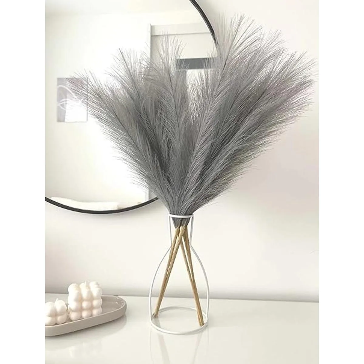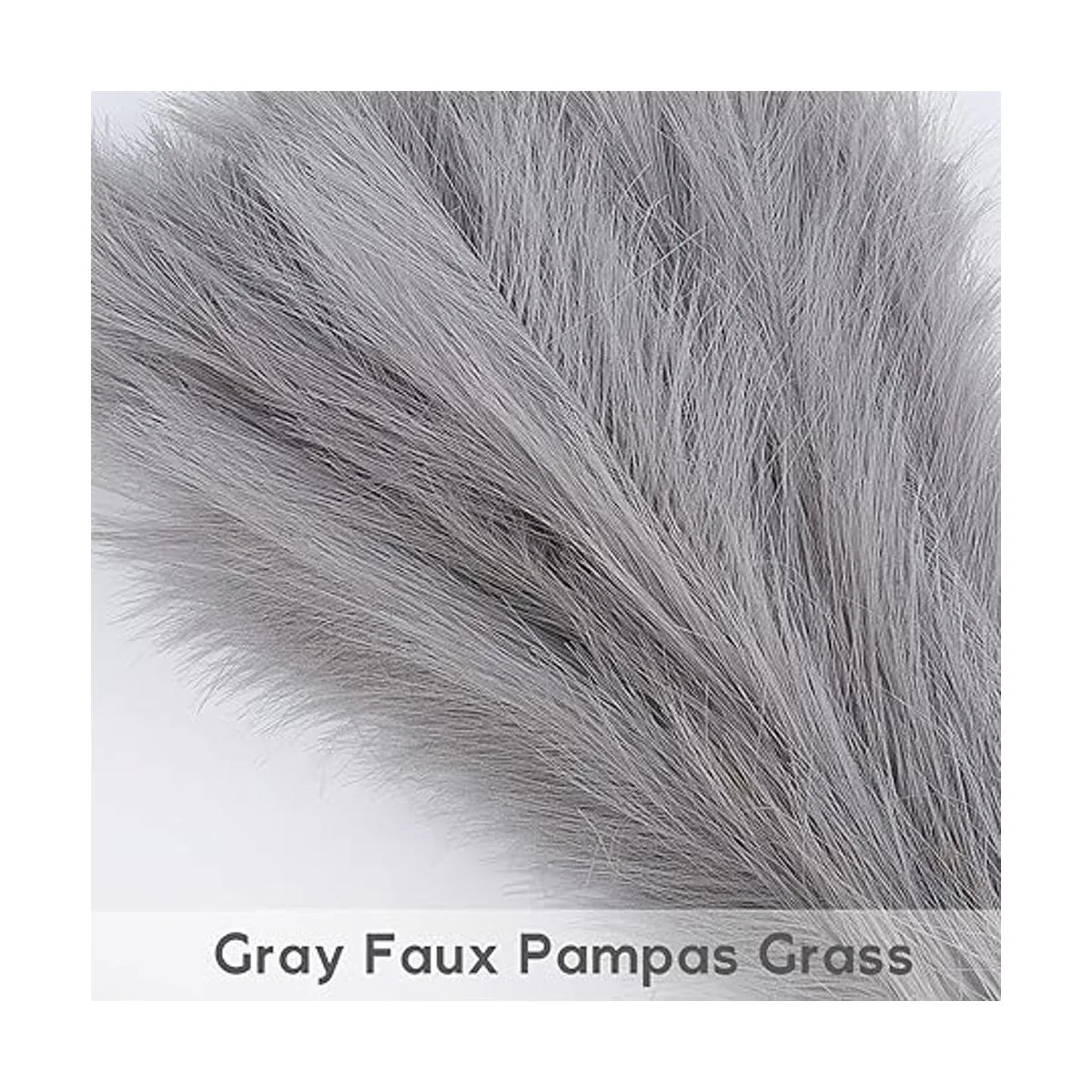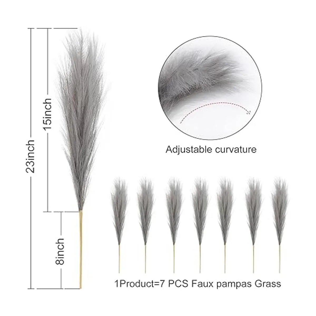 Pusuny 7 piezas de hierba de pampa sintética, 23 pulgadas23.6 in, decoración de hierba de pampa gris, 7 ramas, cada tallo esponjoso y pequeño para relleno de jarrones en la mesa, decoración de jarrón para casa, oficina, boda bohemia gris