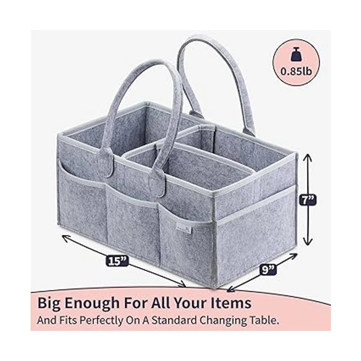 Elegante artículo de decoración de habitación de bebé: nuestro organizador de almacenamiento de 15 x 9 x 7 pulgadas tiene un montón de espacio para todos tus artículos esenciales de recién nacido que necesitas cerca. El versátil organizador de pañales para guardería tiene 8 bolsillos externos y 3 compartimentos.