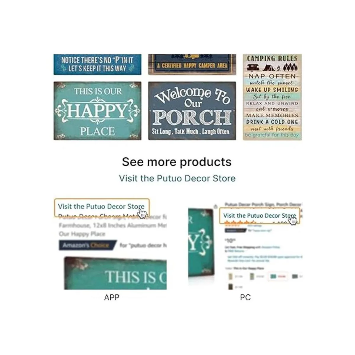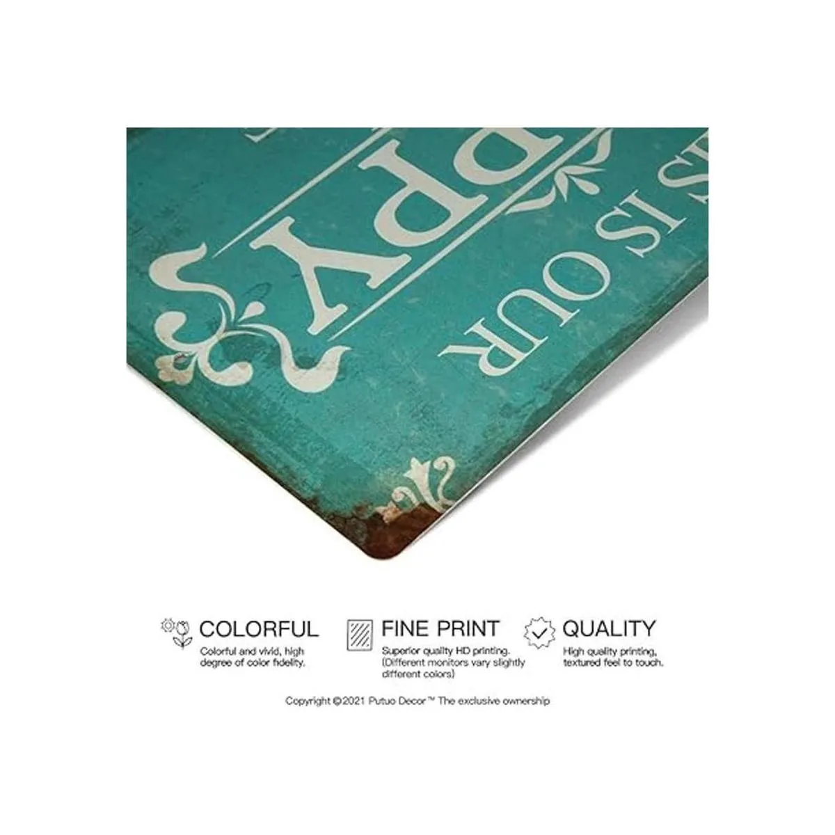 Putuo Decor Letrero de porche para el hogar, bar, granja, letrero de pared de metal de aluminio de 12 x 8 pulgadas, This is Our Happy Place