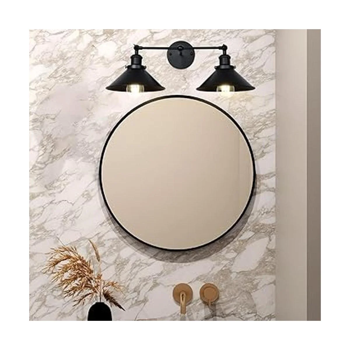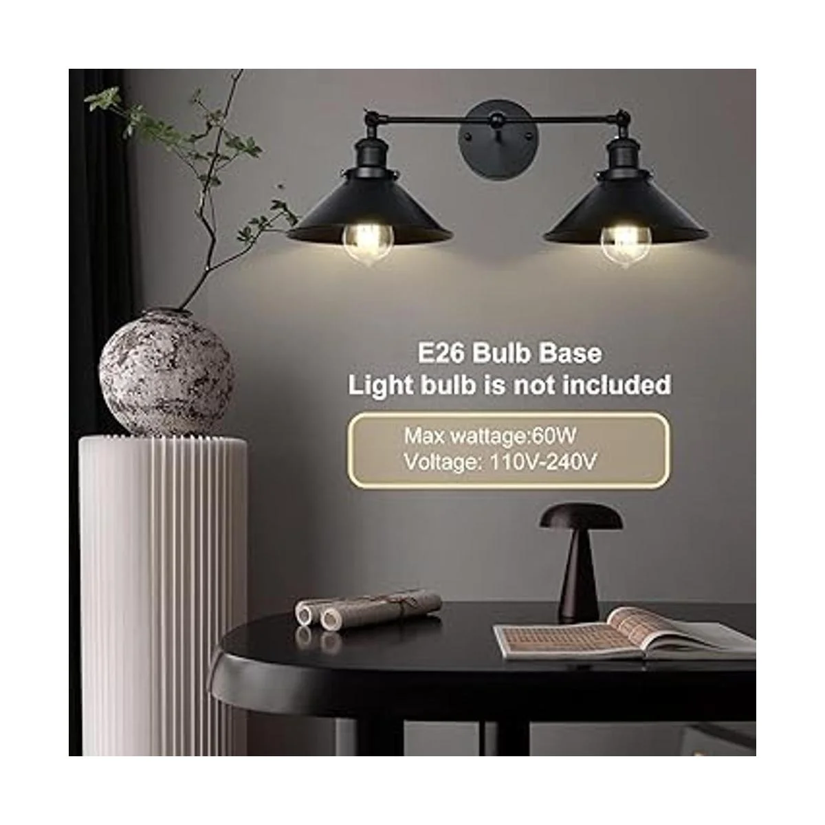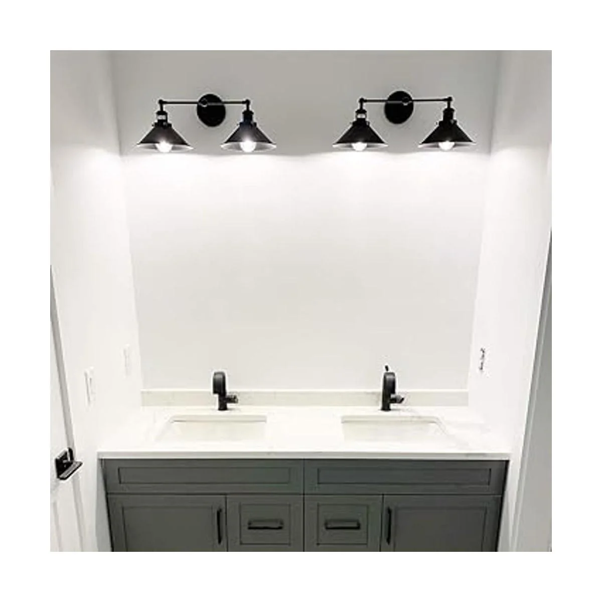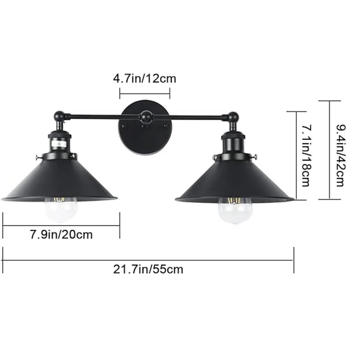 PUUPA 2 luces de tocador de baño, tubo industrial, pantalla de metal negro mate, lámpara de pared de granja
