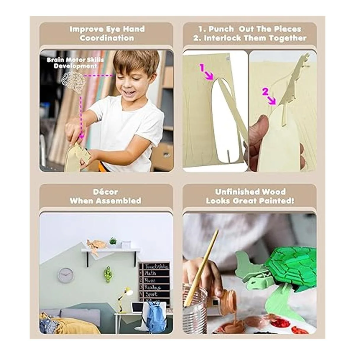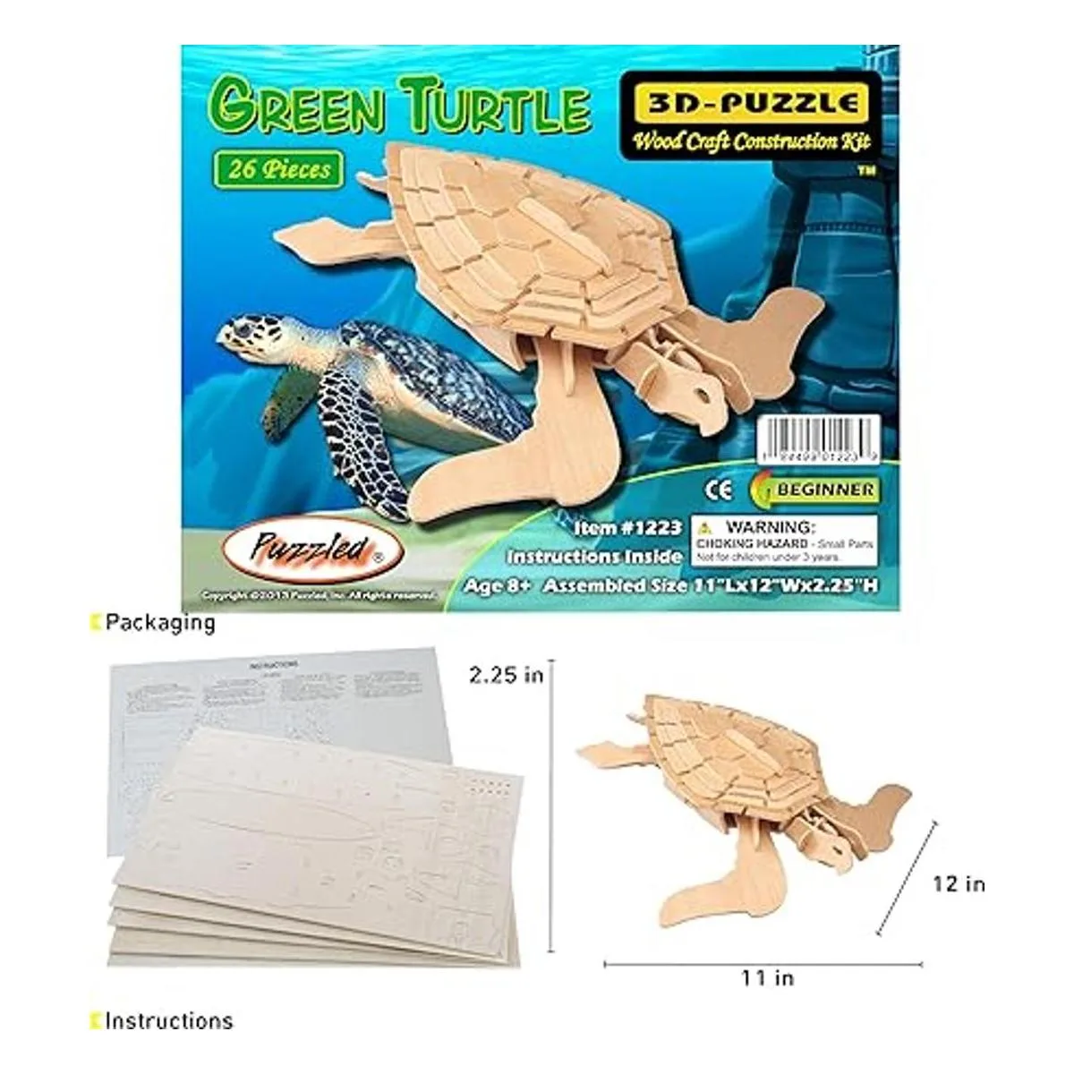 Puzzled Puzzles 3D de madera natural TURTLE VERDE 26 piezas