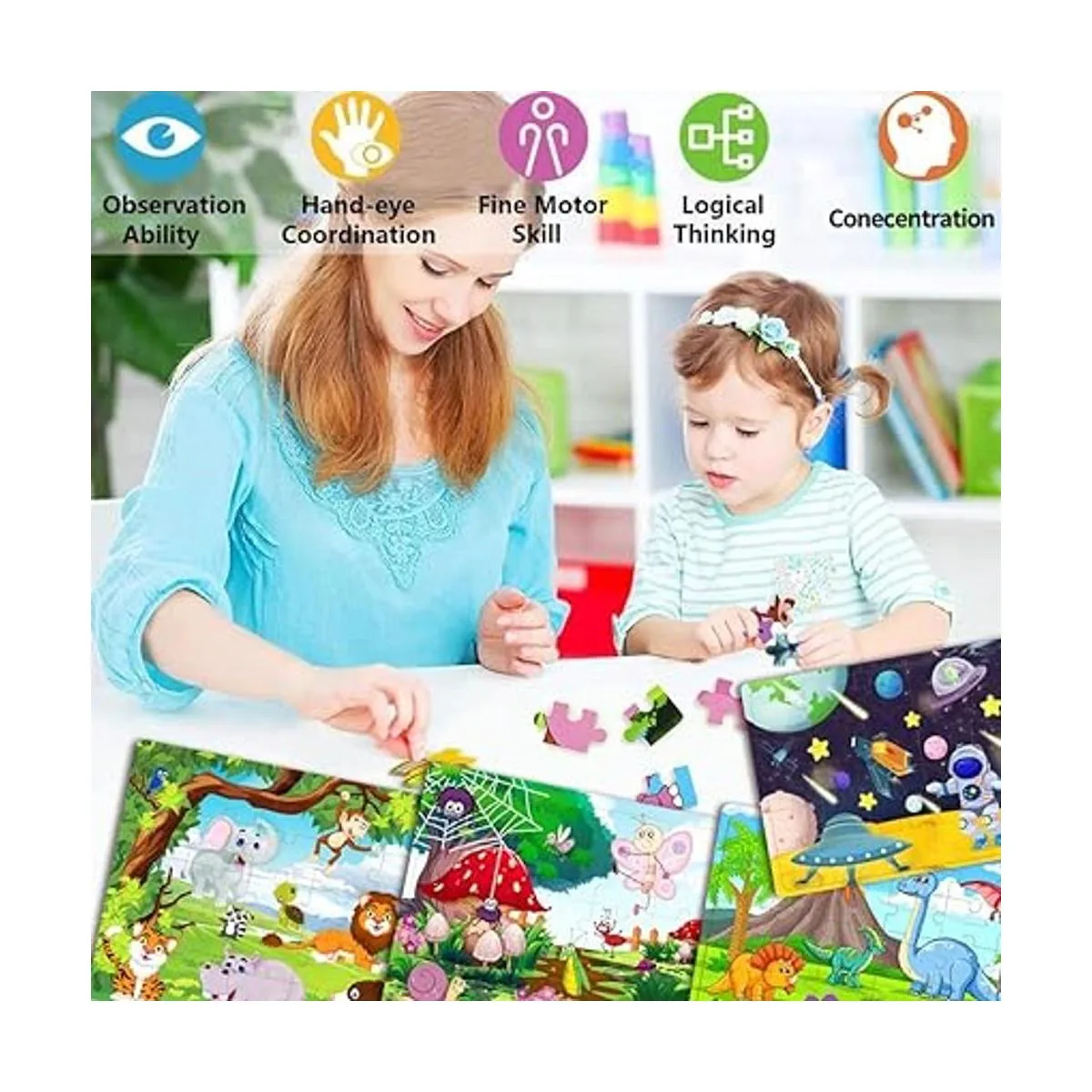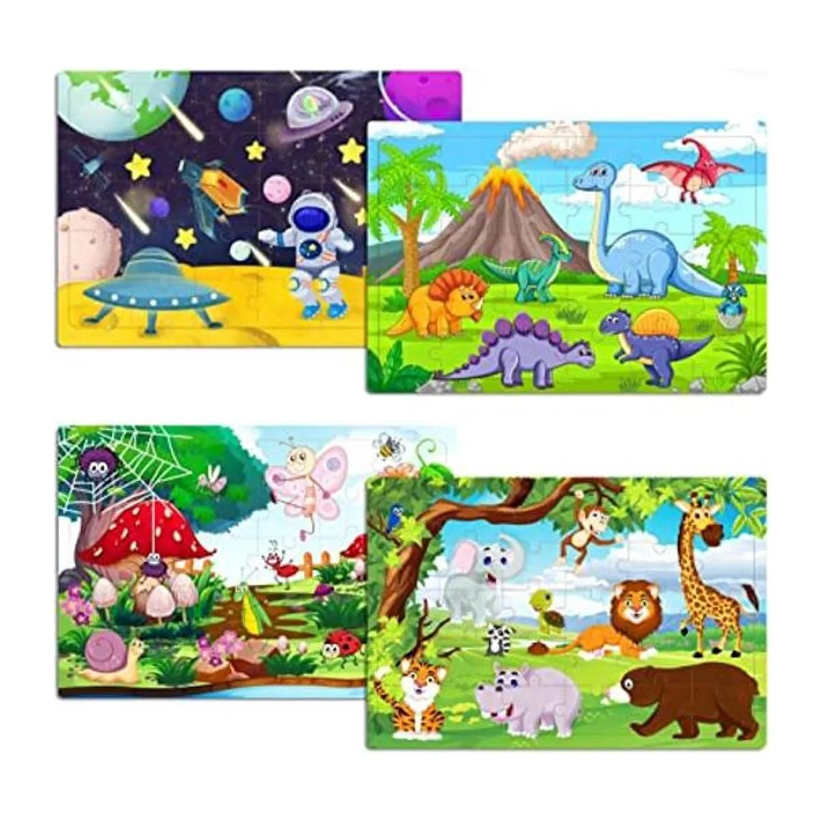 Includes Set of 4 jigsaw puzzles for Dinosaur,Space world,Insect world,Animal theme kids puzzle30 piece each.