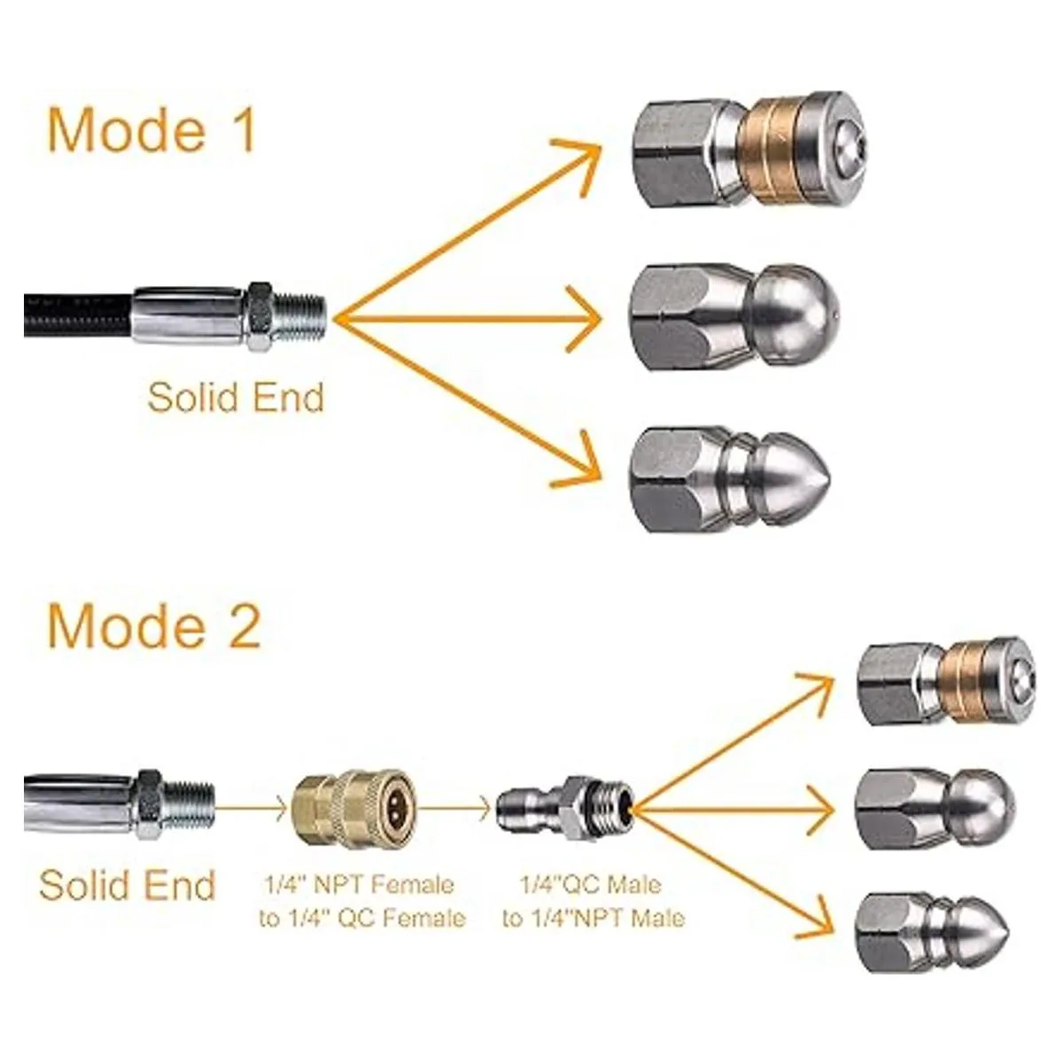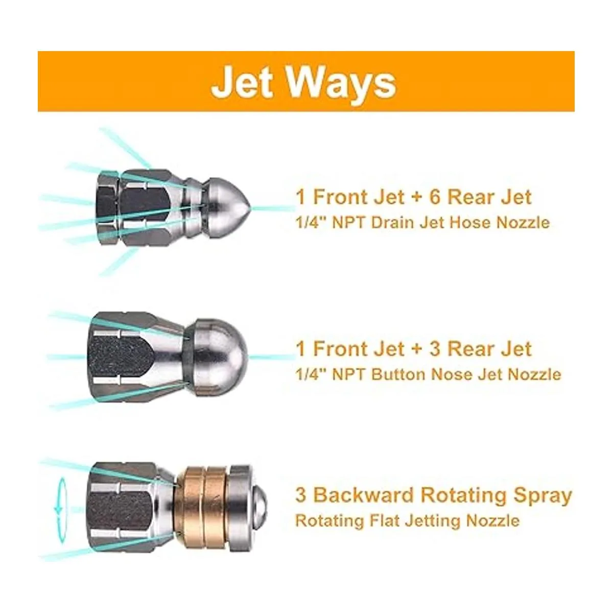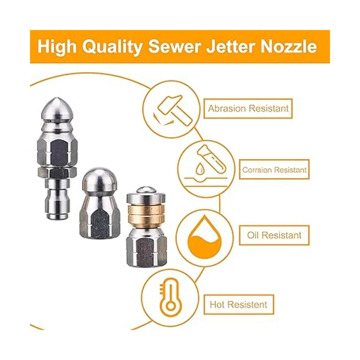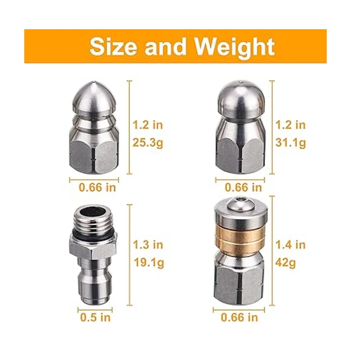 Material de alta calidad: el kit de boquilla de drenaje de alcantarillado a presión está hecho de acero inoxidable duradero en toda la superficie, que es naturalmente inmune al desgaste, la corrosión, el óxido y el aceite. Una mejor opción para acompañar toda tu vida.