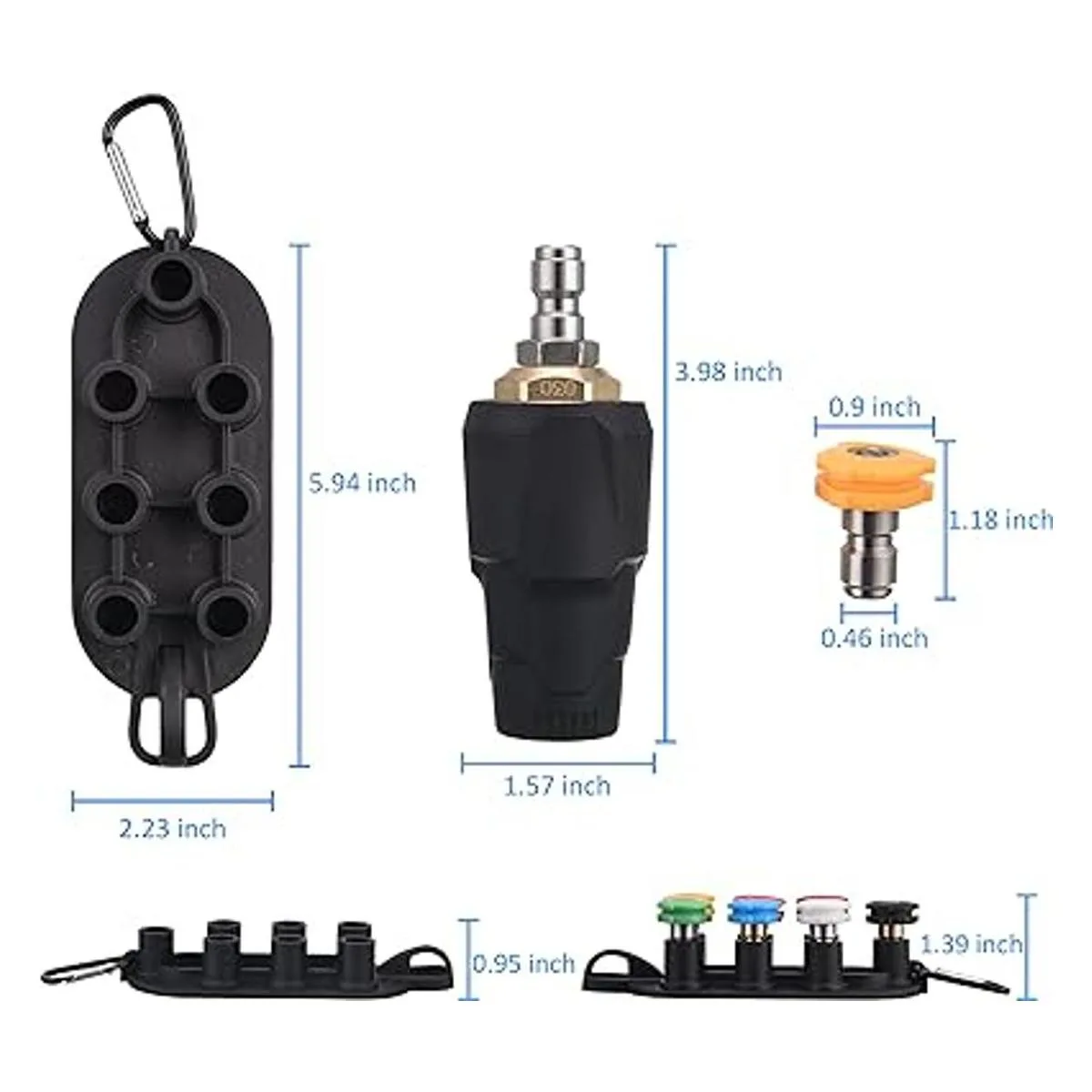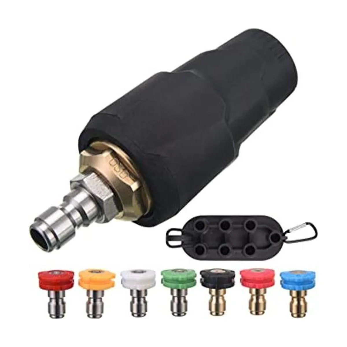 PWACCS Juego completo de puntas de boquilla de lavadora a presión, boquilla turbo giratoria de 3600 PSI para lavadora eléctrica de 3.0 GPM, kit de 7 puntas de boquilla de pulverización con soporte de boquilla de múltiples grados, conexión rápida de 14 pulgadas