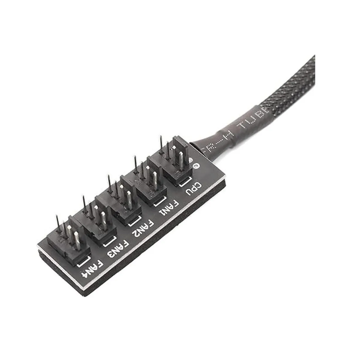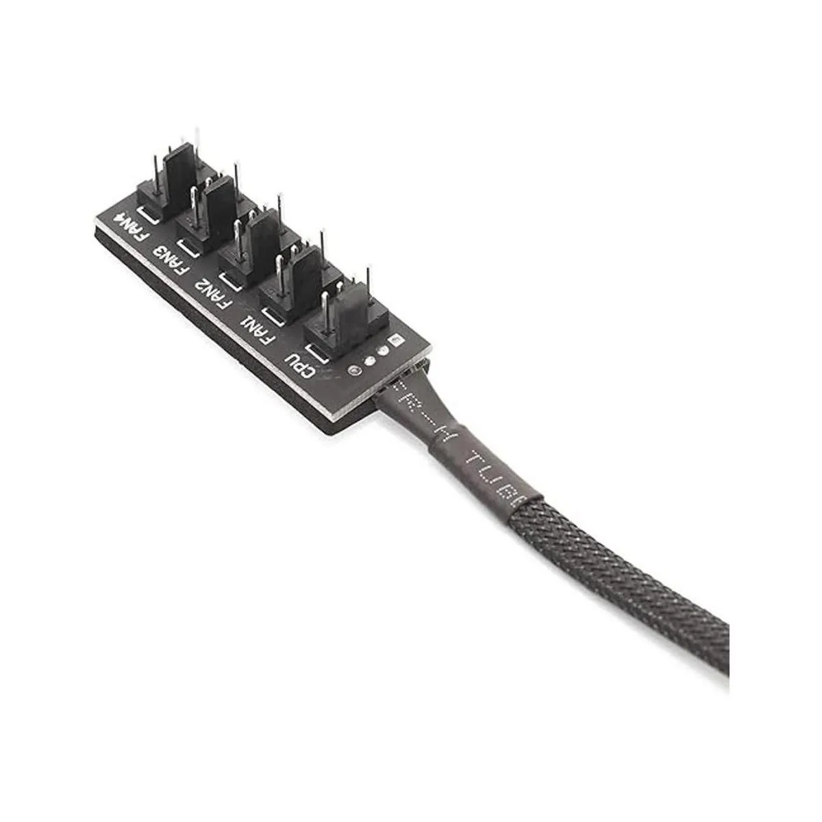 PWM Cable de extensión divisor de ventilador de 1 a 5 cables divisor de ventilador de ordenador compatible con ventiladores de refrigeración de PC de 3 pines y 4 pines. Cable trenzado de nailon negro de 13.0 in.