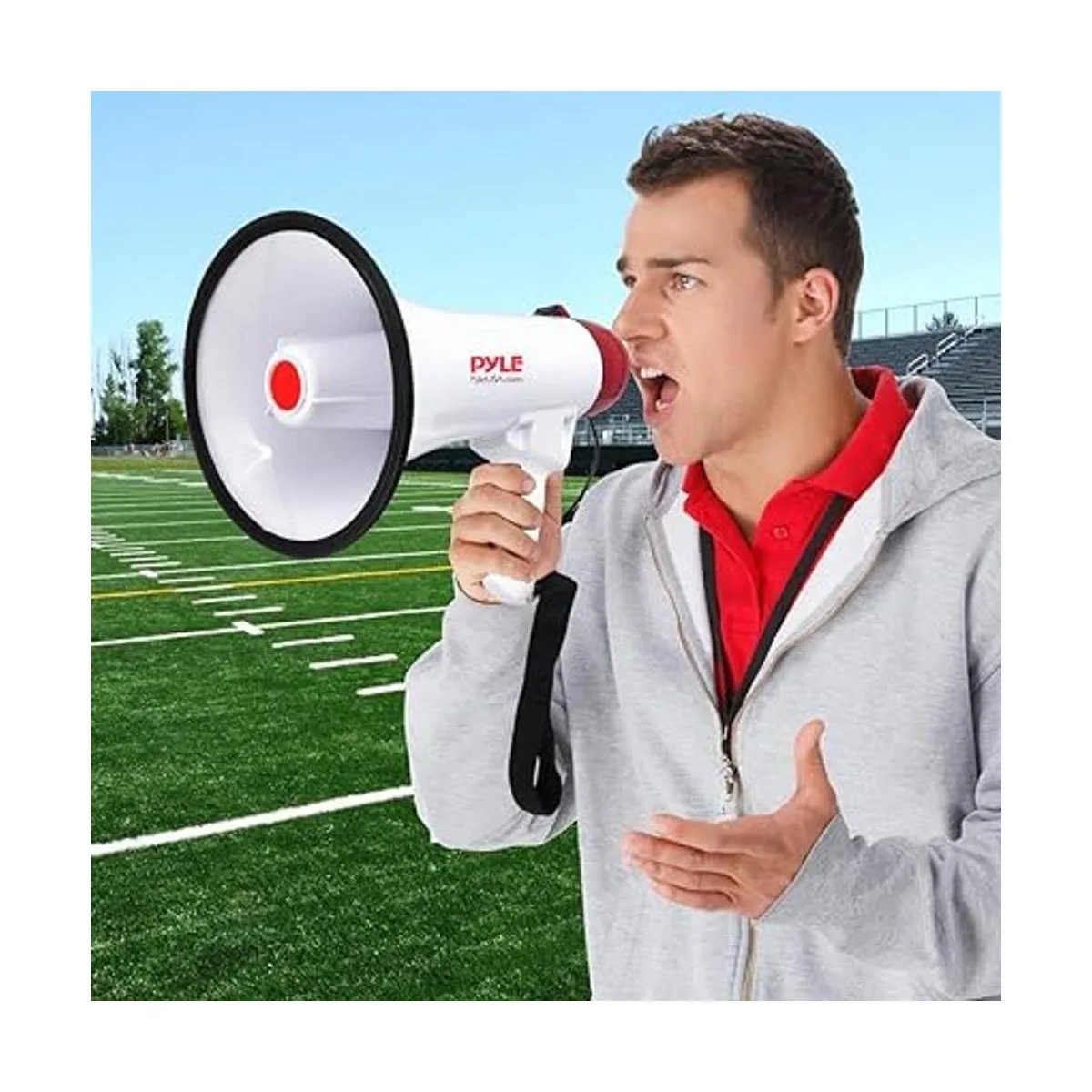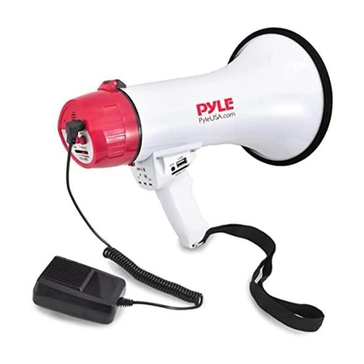 Pyle Megáfono Bluetooth Bullhorn PA Altavoz megáfono para iPhone con micrófono con cable, modo de alarma de sirena, lectores MP3USBSD PMP42BT0, rojoblanco