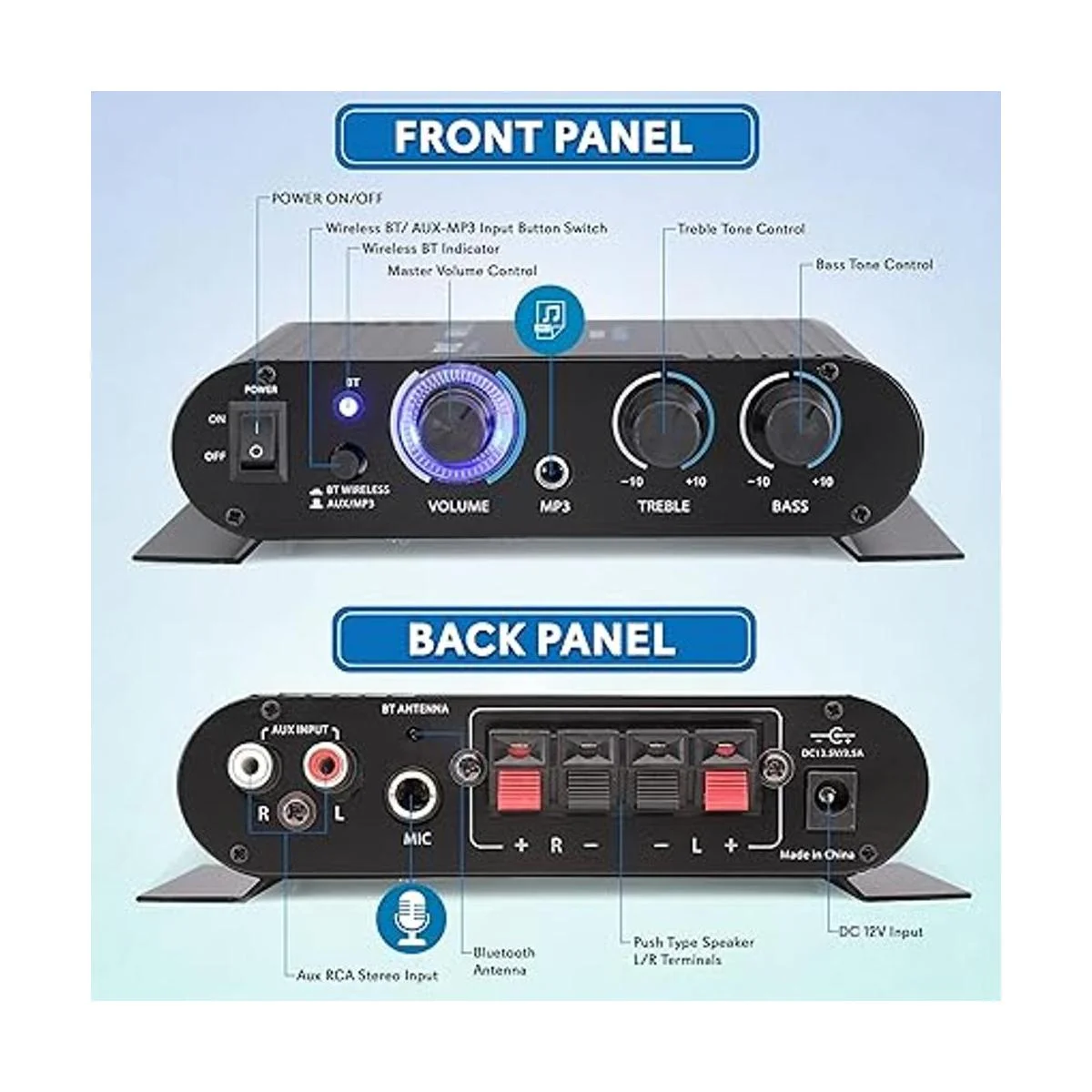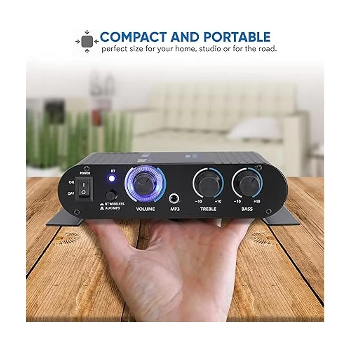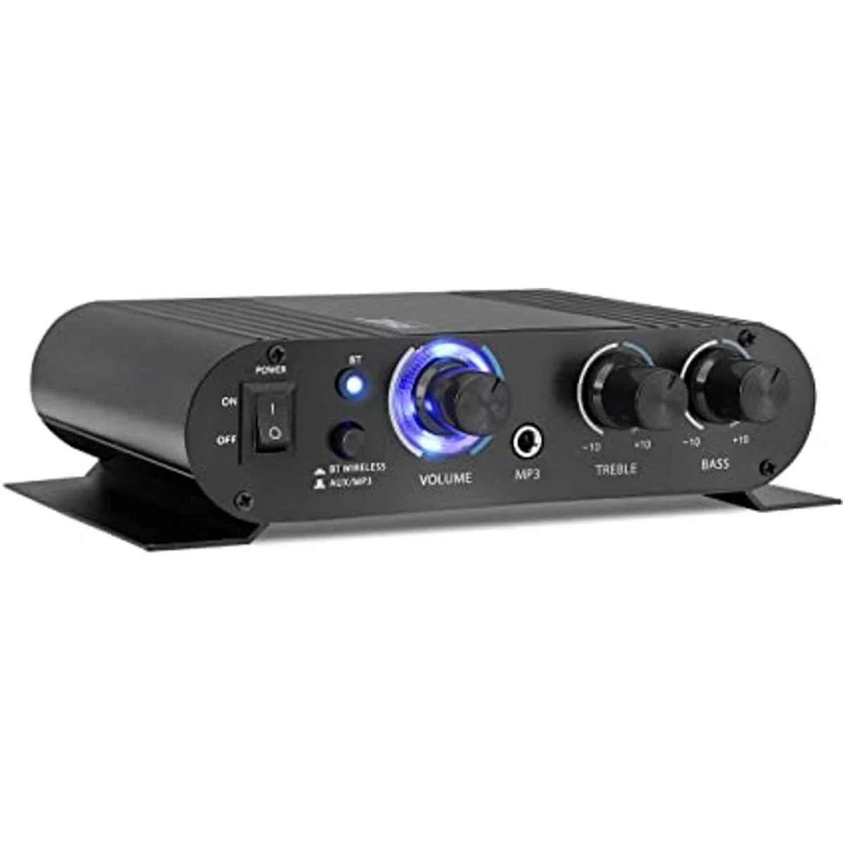 Pyle PFA330BT mini amplificador inalámbrico estéreo Bluetooth de 90 Watt entradas para micrófono, RCA, y auxiliar de 3,5 mm