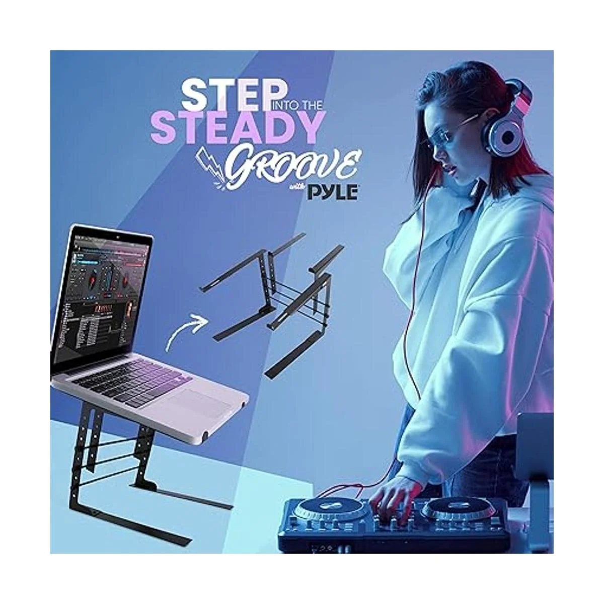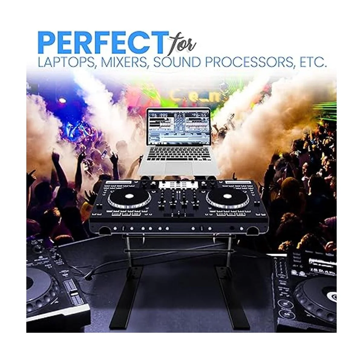 Pyle PLPTS38 dispositivo universal dual de soporte para portátil, equipos de sonido estación de trabajo para mezclado de DJs