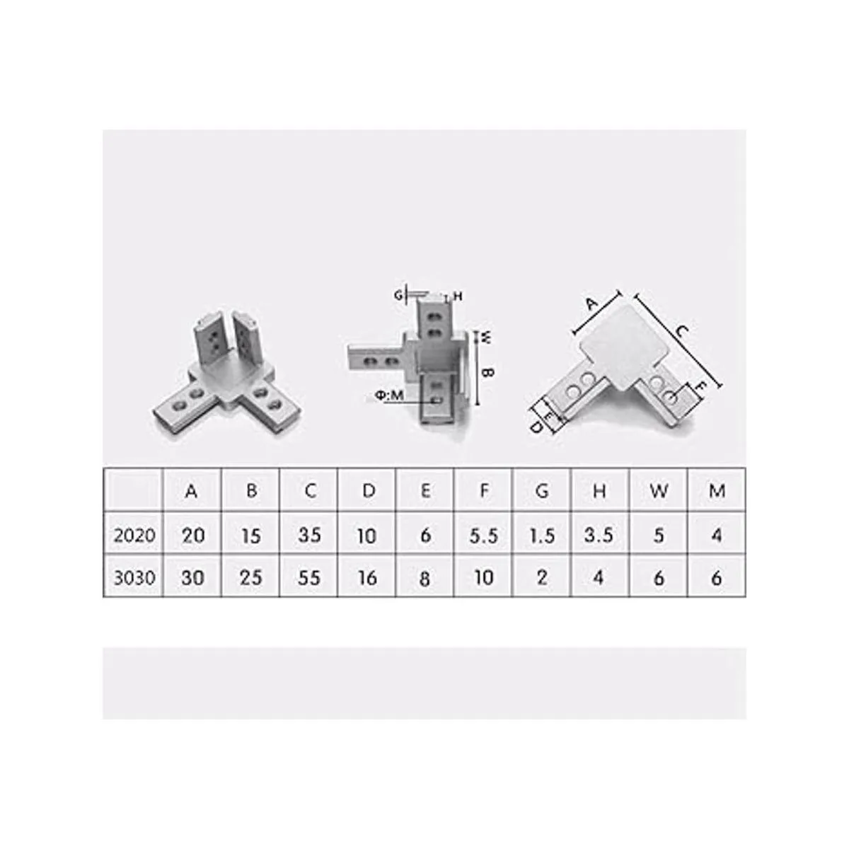Adecuado para la conexión en los ángulos especificados, perfiles de marco de aluminio de 0.236 in/0.315 in con ranura en T de la serie métrica 20/30.
