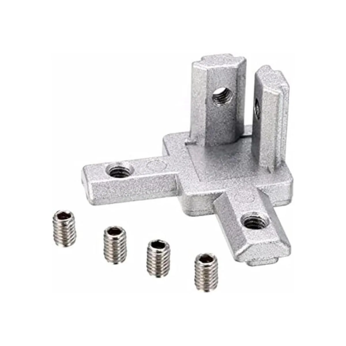 PZRT Juego de 4 soportes de esquina para serie 2020 plata, negro serie 3030 plata, 3 vías, con tornillos para perfil de extrusión de aluminio estándar de 0.236 in en T