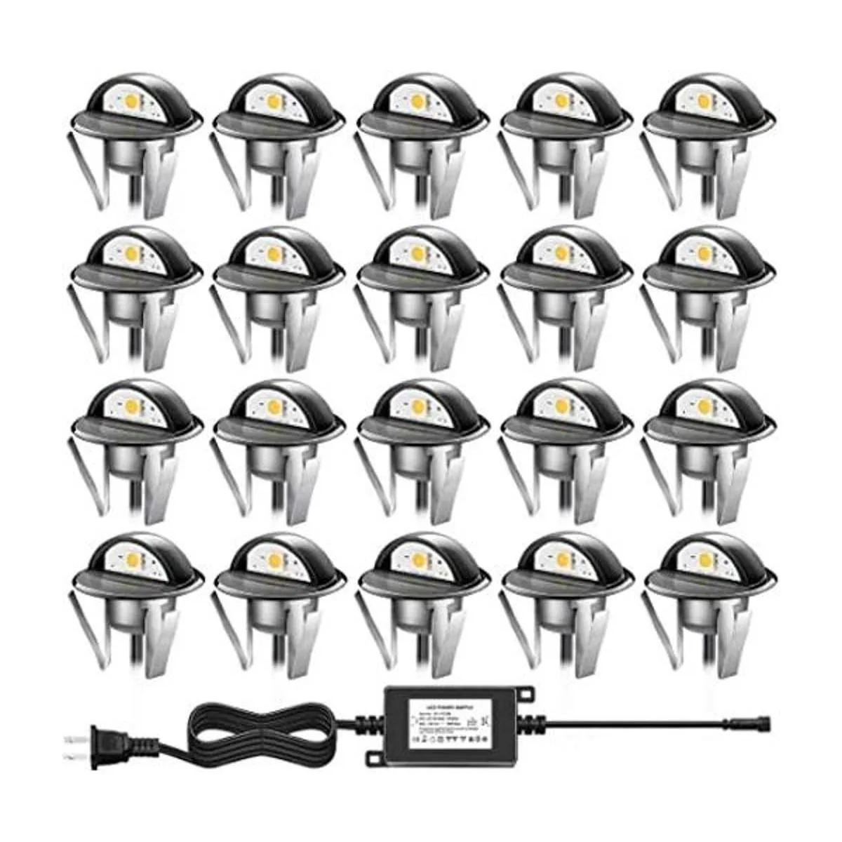 QACA 20 luces LED de bajo voltaje IP65, impermeable, empotradas en la cubierta, media luna F1.38 yardas, jardín, patio, patio, paisaje, camino, decoración, color blanco cálido