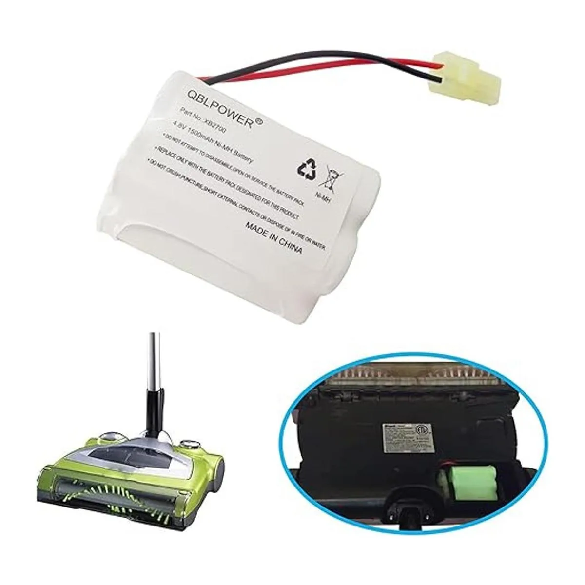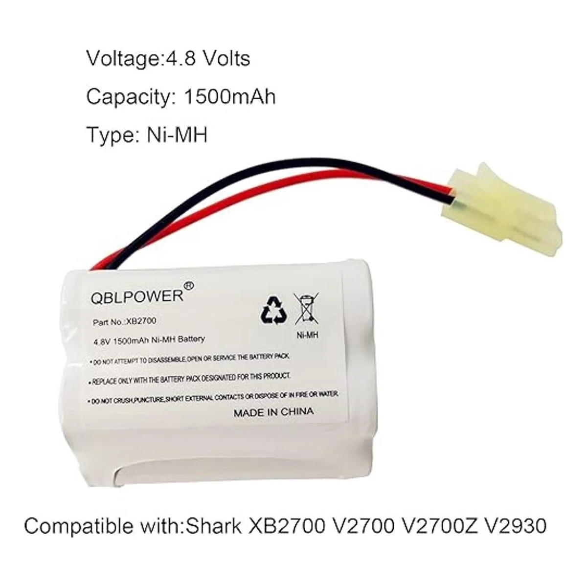 QBLPOWER XB2700 V2700 V2700Z V2930 VACXB2700 Batería de repuesto NiMh 4.8V 1500mAh Compatible con Euro Pro Shark alfombra y barredora de alfombras 1 unidad