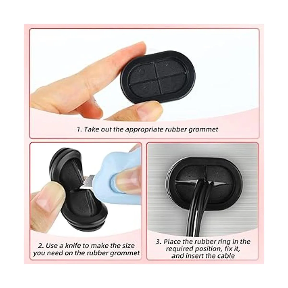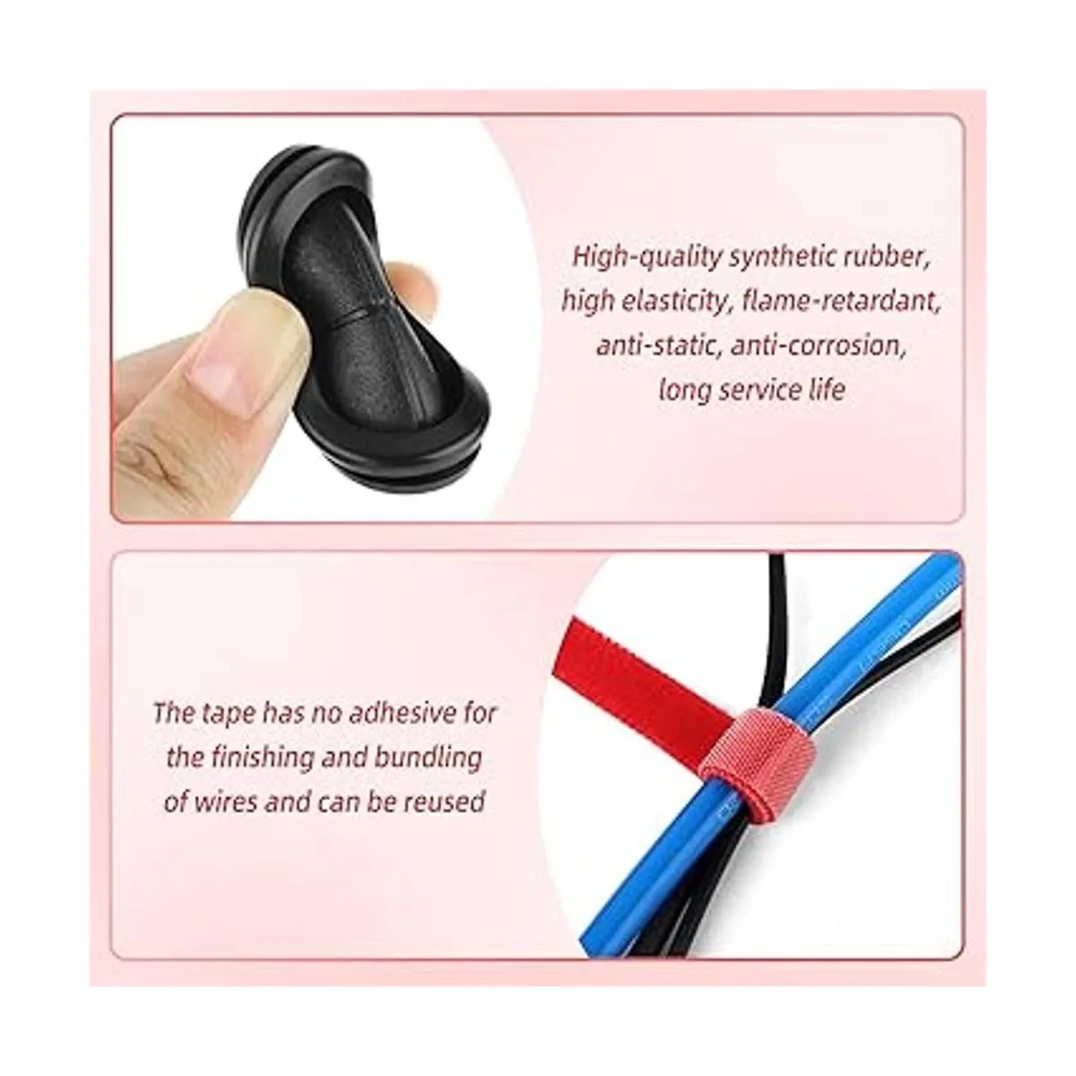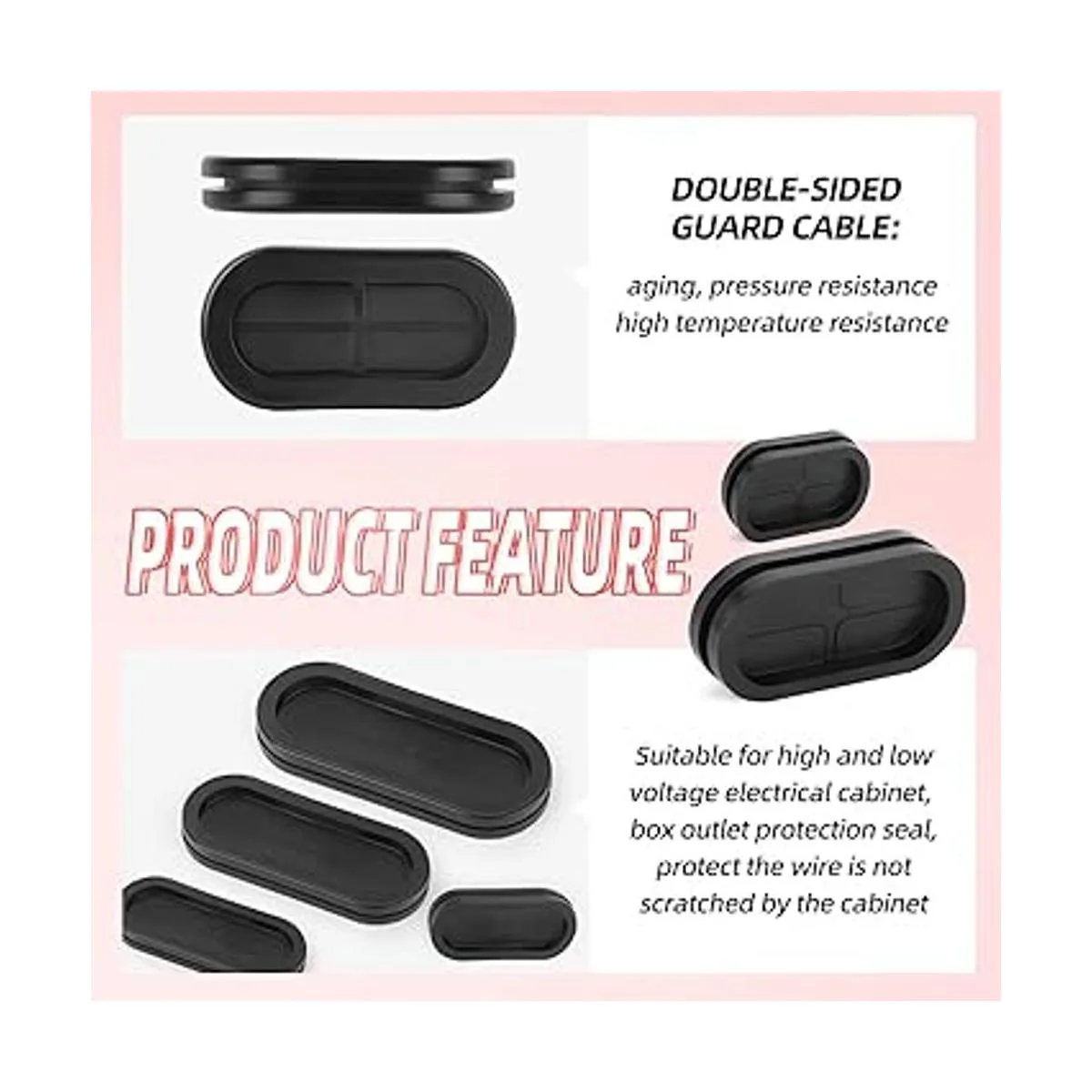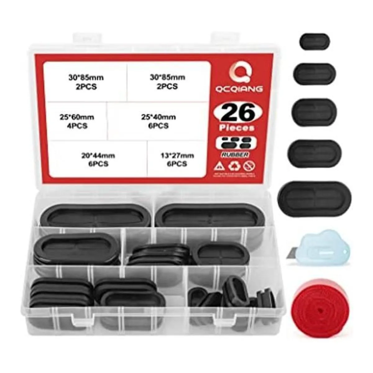 QCQIANG 26 ojales de goma ovalados de doble cara, agujeros de cortafuegos, protección de cables con cinta adhesiva para cable, 5 tamaños de 0.512 x 1.063 in, 0.984 x 1.575 in, 0.787 x 1.732 in, 0.984 x 2.362 in, 1.181 x 3.346 in, color negro