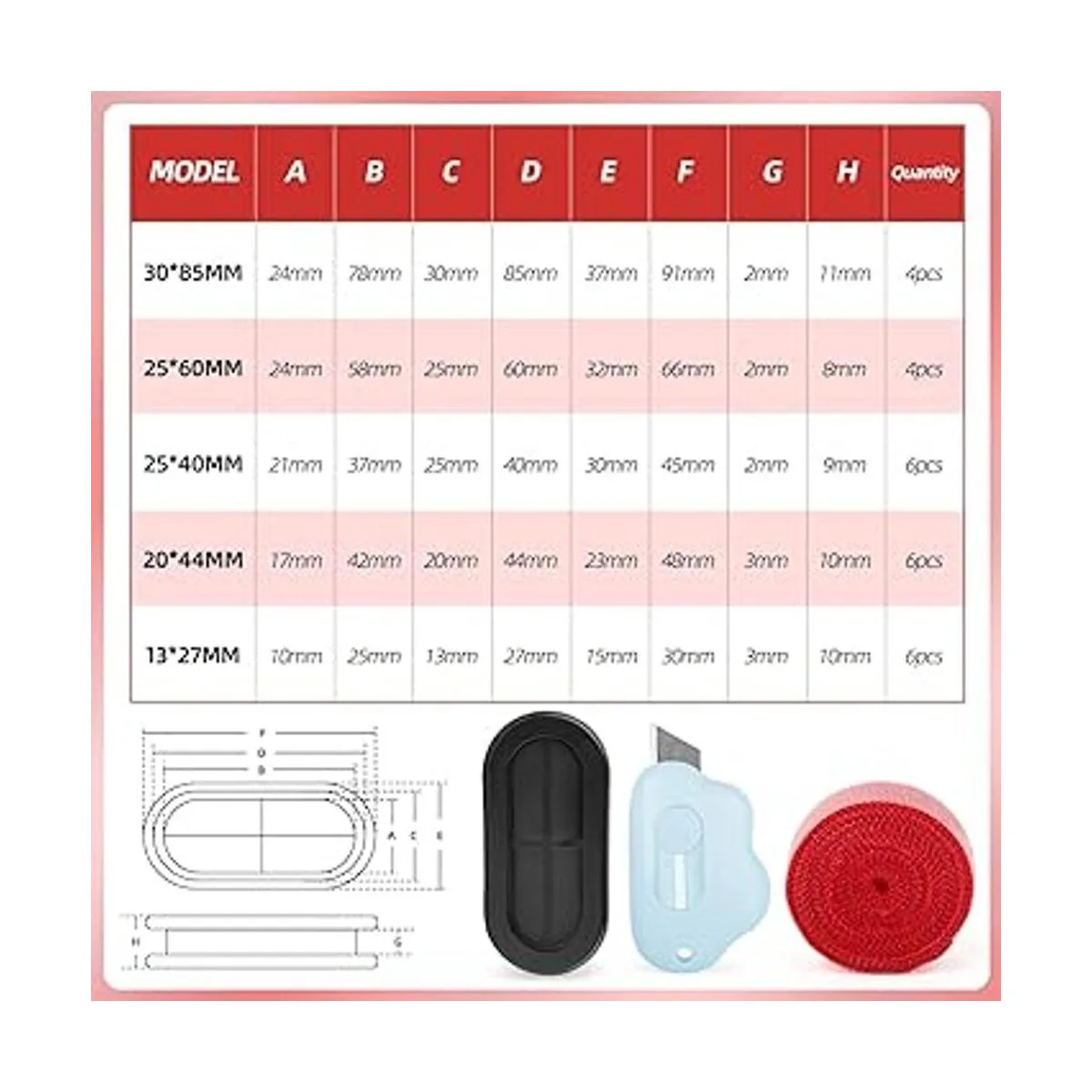 Tamaño: 0.512 x 1.063 in x 6 piezas, 0.984 x 1.575 in x 6 piezas, 0.787 x 1.732 in, 0.984 x 2.362 in x 4 piezas, 1.181 x 3.346 in x 4 piezas