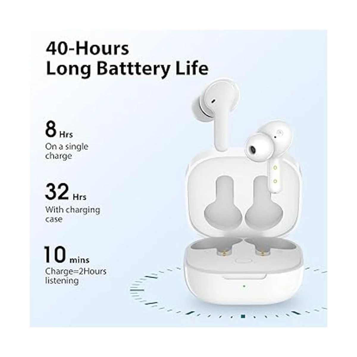 Tiempo de reproducción de 40 horas y carga rápida de 5 minutos: hasta 8 horas de tiempo de escucha hasta 40 horas de tiempo de reproducción combinado con la funda de carga. La función de carga rápida puede recargarla rápidamente durante 1 hora de uso en solo 5 minutos.