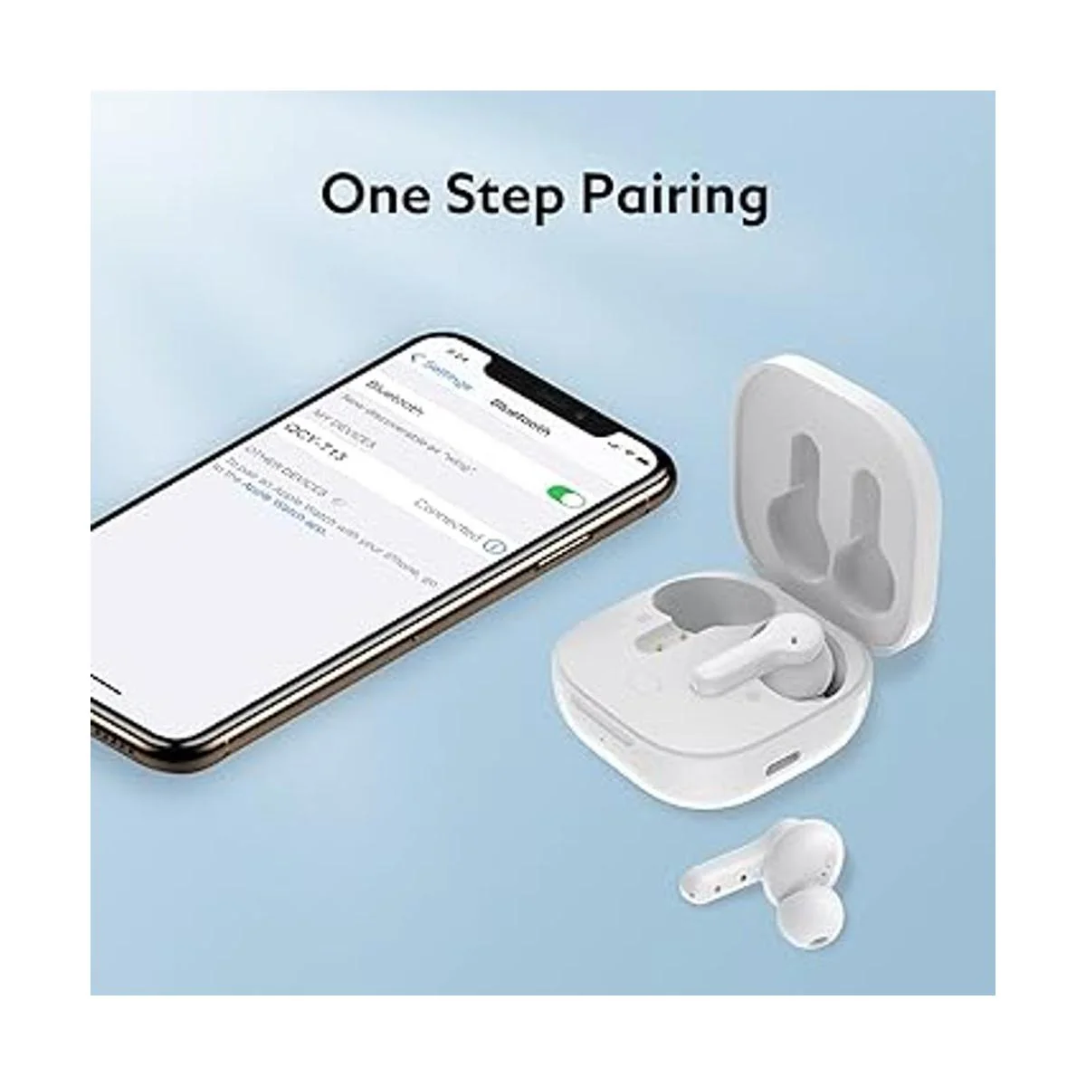 Emparejamiento en un solo paso: coge 2 auriculares de la funda de carga y se conectarán automáticamente entre sí, luego solo un paso entra fácilmente en la configuración Bluetooth del teléfono móvil para emparejar los auriculares.