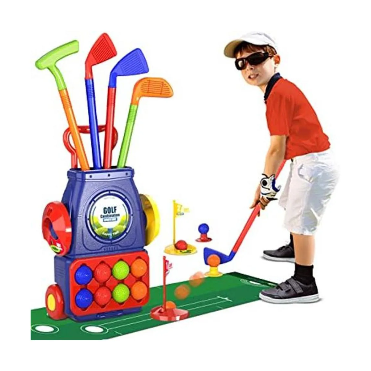 UPGRADE KIDS GOLF CLUBS SET What you will get: 8 golf balls, 4 colorful golf clubs of different shapes and sizes, 2 practice holes bases, 1 putting mat and 1 golf cart with 2 wheels for easy to drag and storage, which is designed for 35 24 year old toddler boy girls.