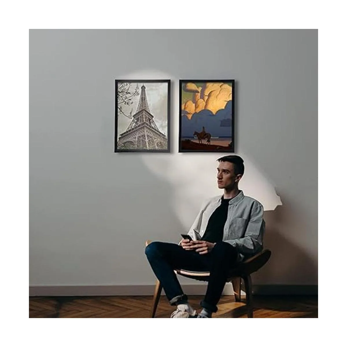 Excelente diseño: el diseño de gancho trasero es fácil de instalar, lo que es conveniente para colgar tus obras favoritas/carteles en la pared. El clásico marco negro se adapta bien a exposiciones de galería, que puede combinar perfectamente con tus obras y resaltar la calidad de ellos