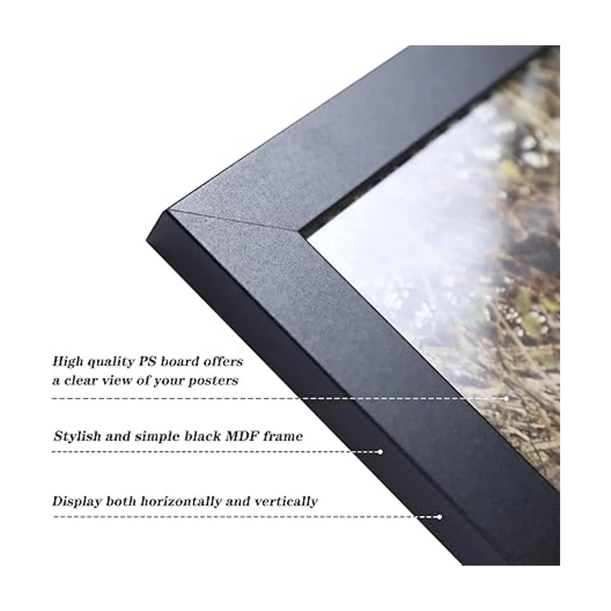 Material de alta calidad: el marco para póster de 18 x 24 pulgadas está hecho de un marco de MDF y panel trasero y tablero de PS que puede ofrecer una visión clara de tus carteles, imágenes, etc